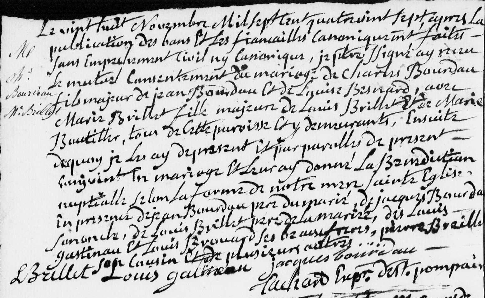 Mariage : 28 novembre 1787 à Saint-Pompain 79160