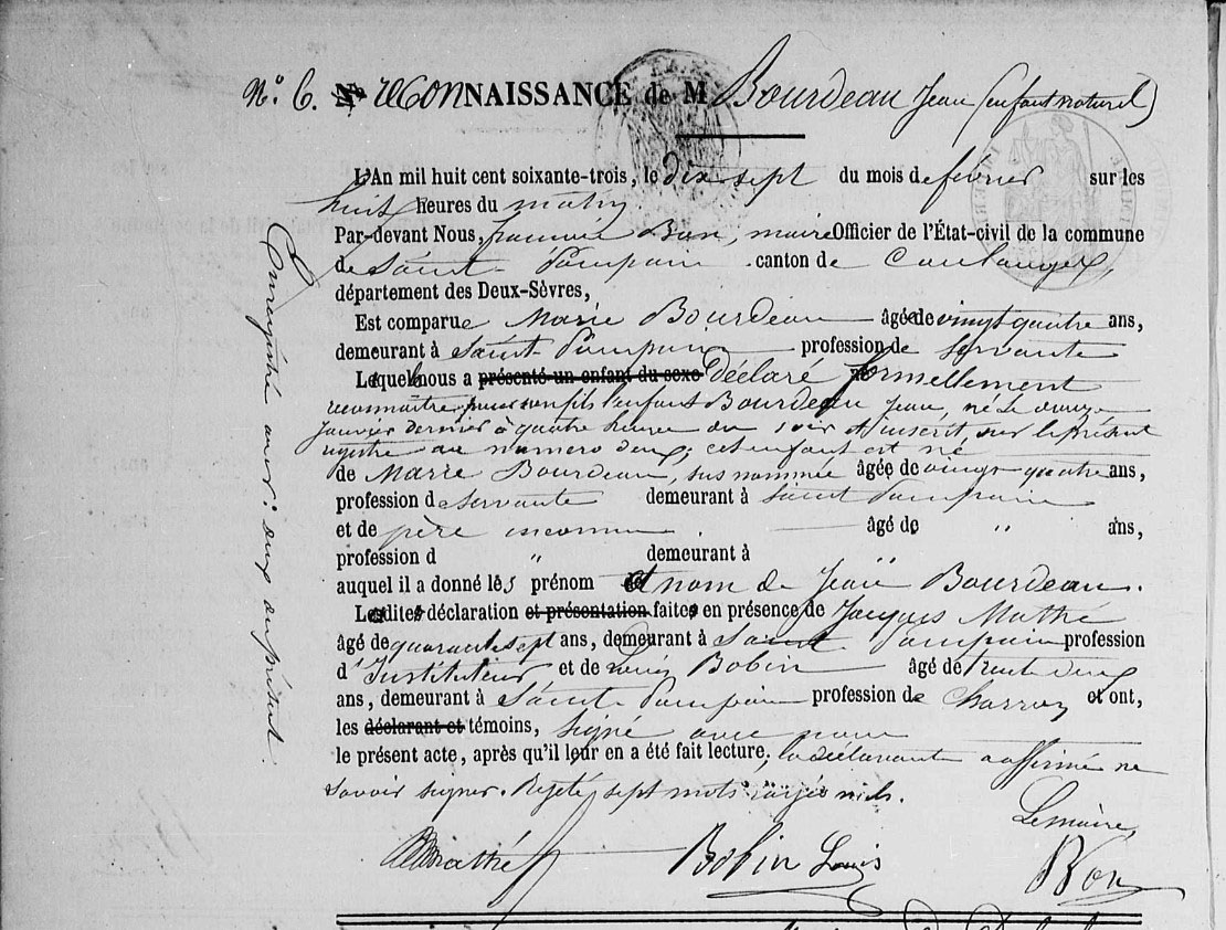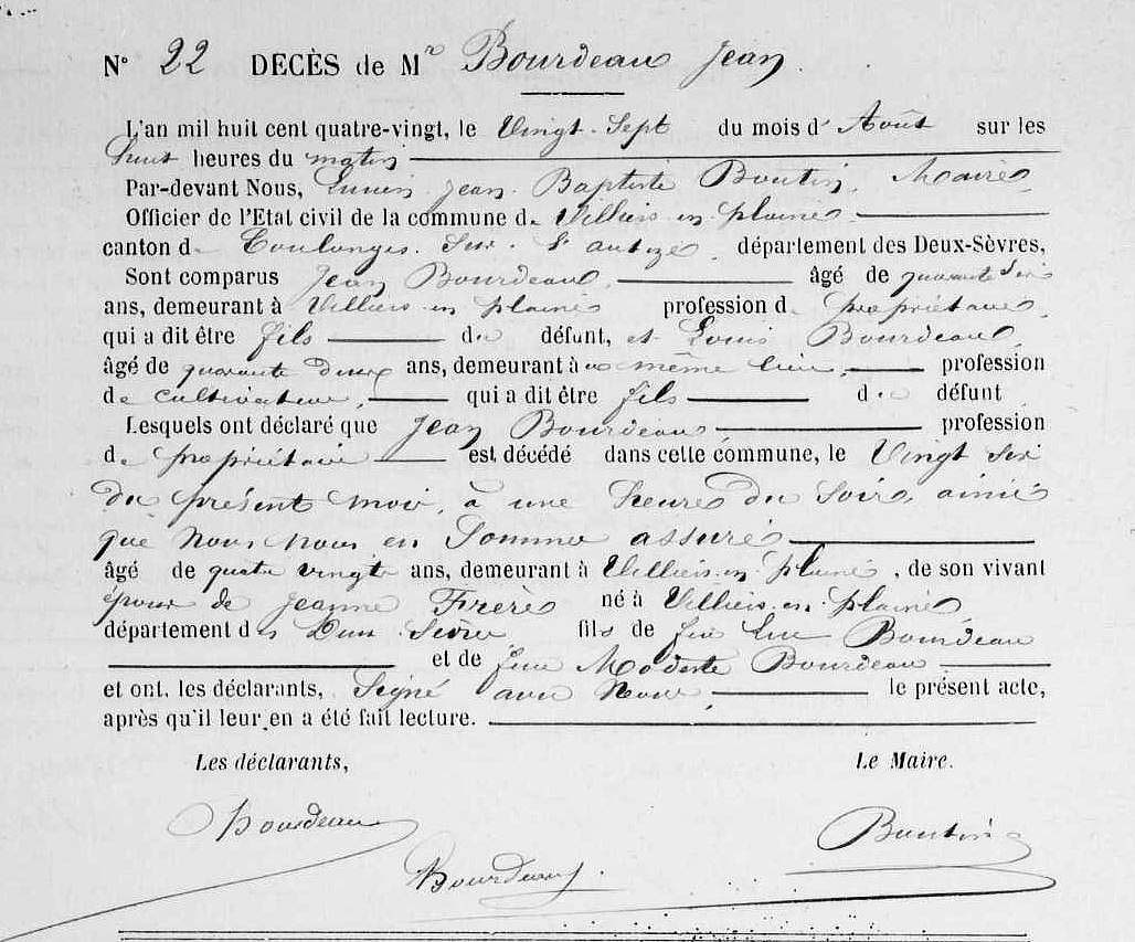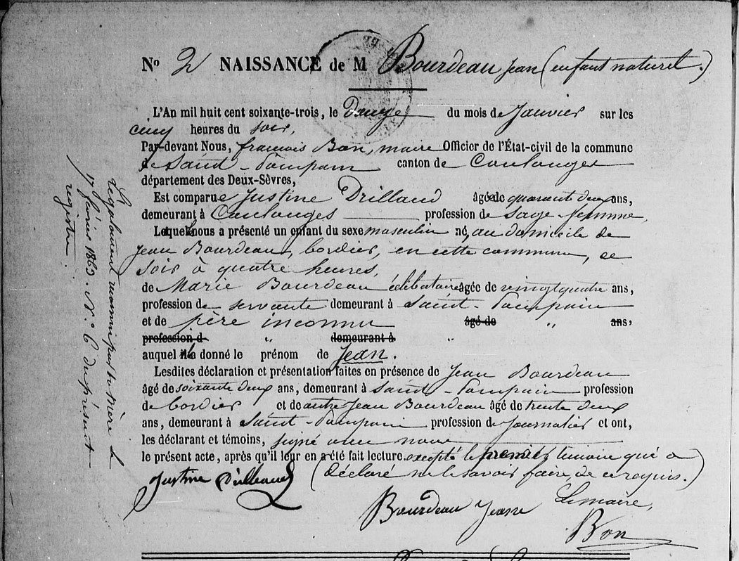 Père : BOURDEAU Jean ( 1801 - 1880 )