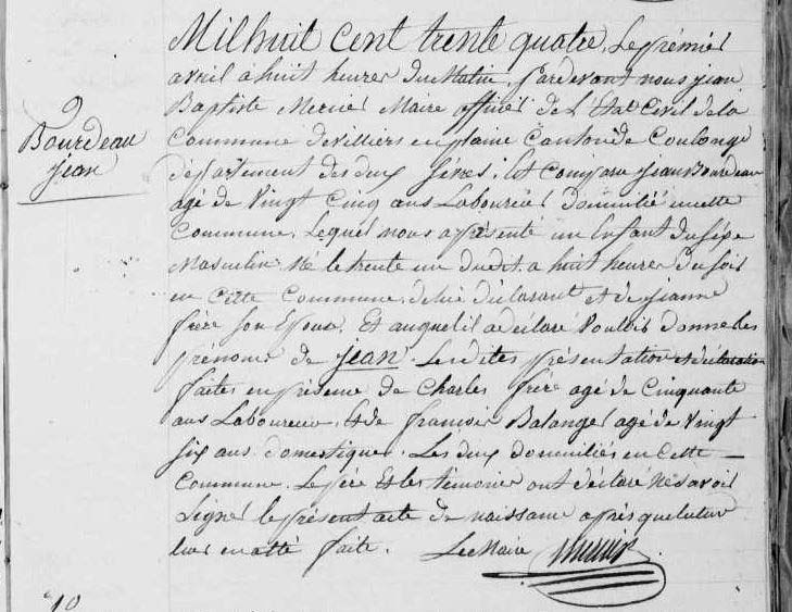 Enfants : BOURDEAU Jean ( 1751 - ? )