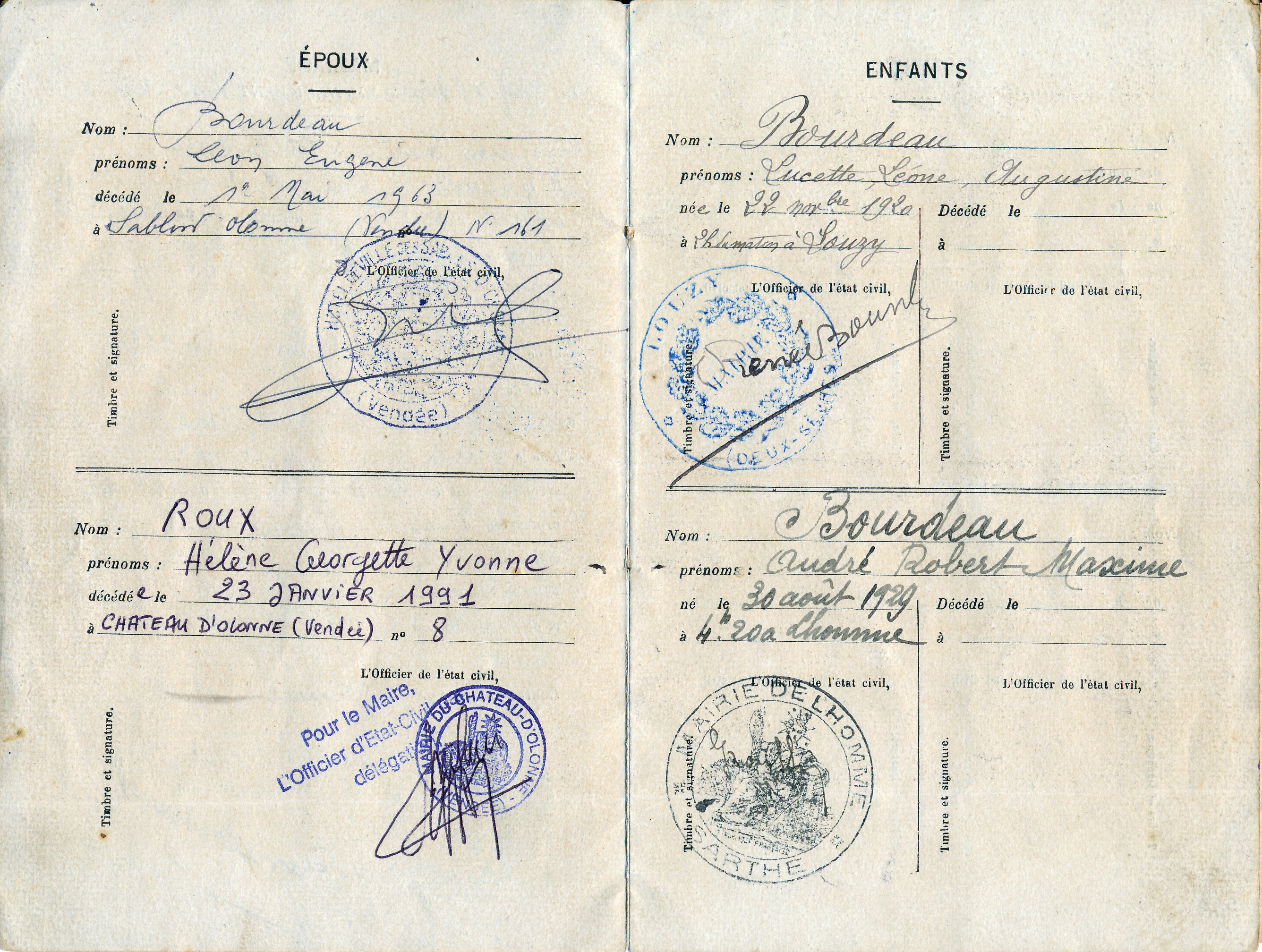 Enfants : BOURDEAU Lucette Léone Augustine ( 1920 - 2009 )