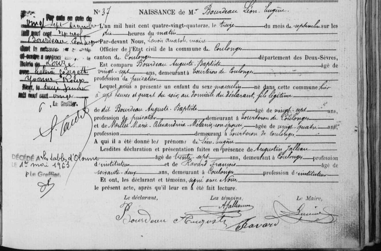 Père : BOURDEAU Auguste Baptiste ( 1866 - 1900 )