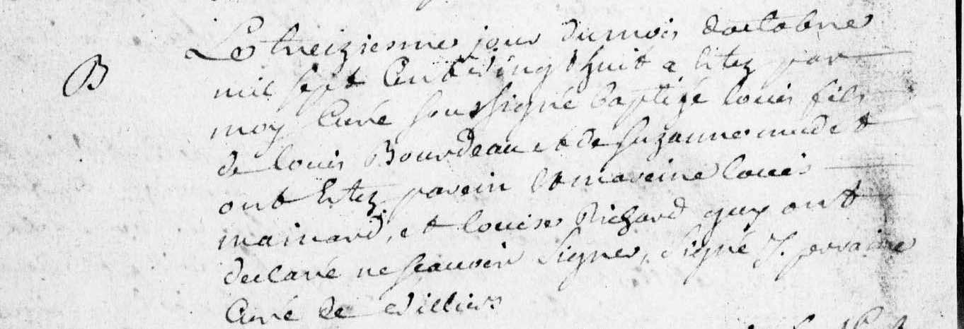 Baptême : 10 octobre 1724 à Saint-Pompain 79160 Beauvais