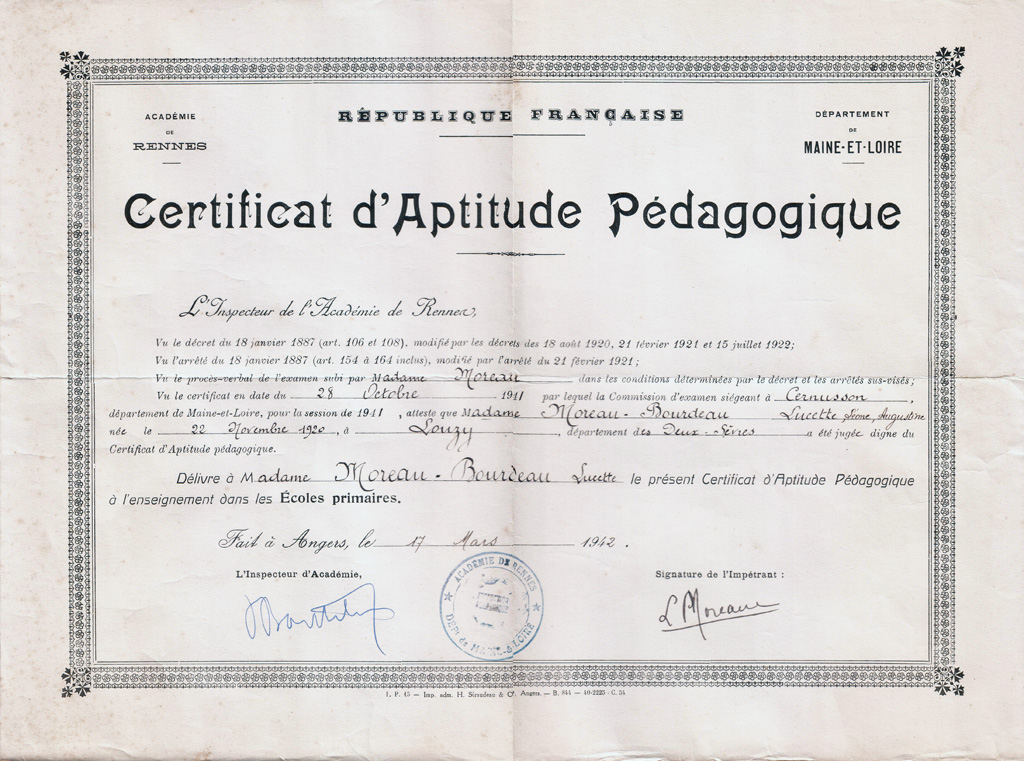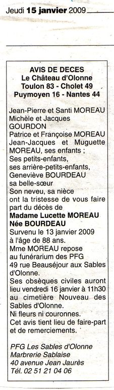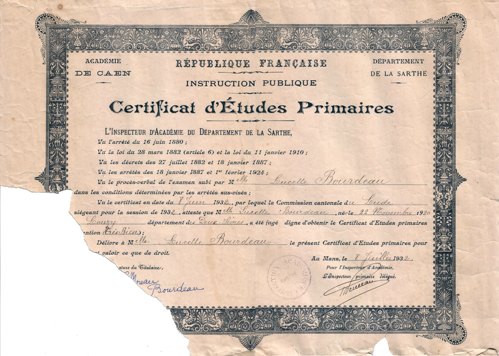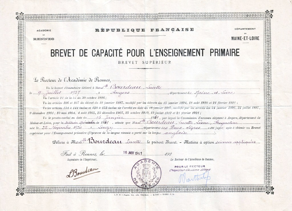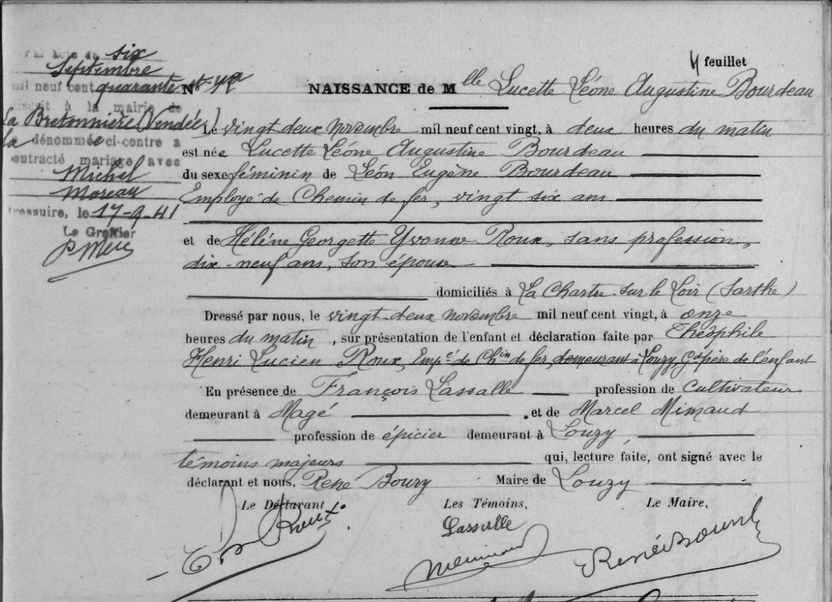 Père : BOURDEAU Léon Eugène ( 1894 - 1963 )