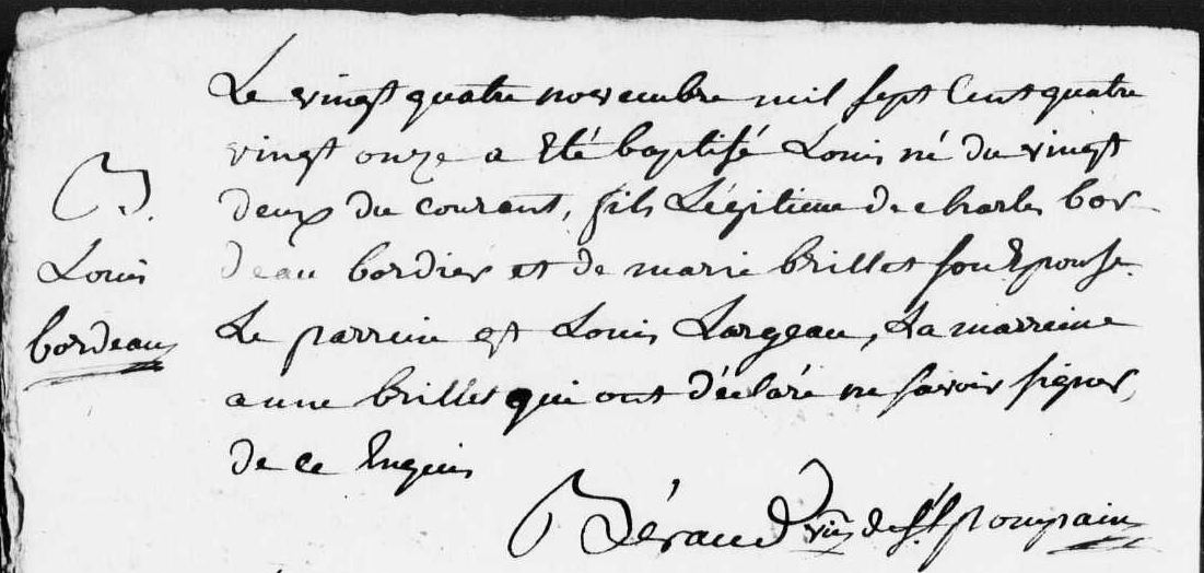 Enfants : BOURDEAU Étienne ( 1689 - ? )