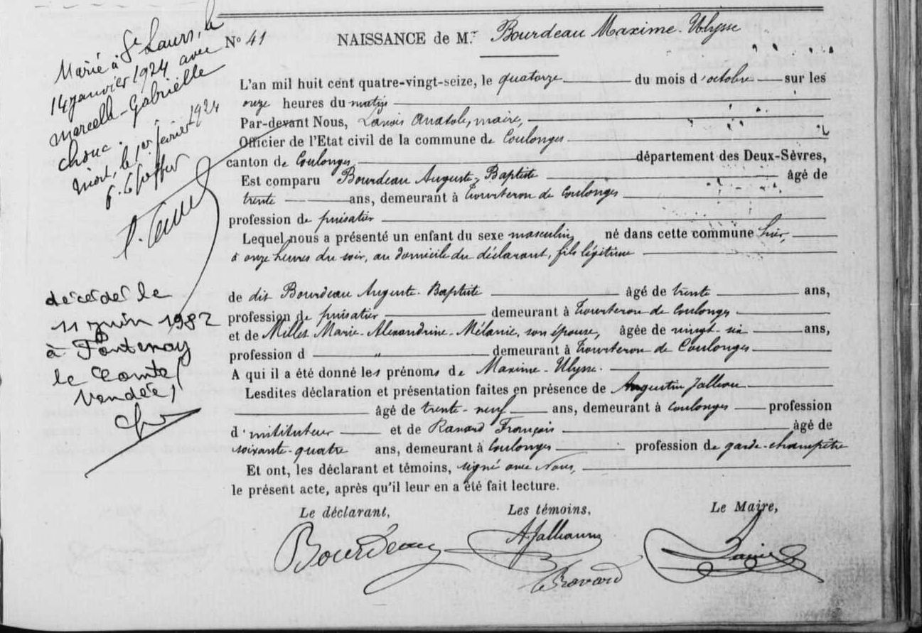 Mariage : 14 janvier 1924 à Saint-Laurs 79160
