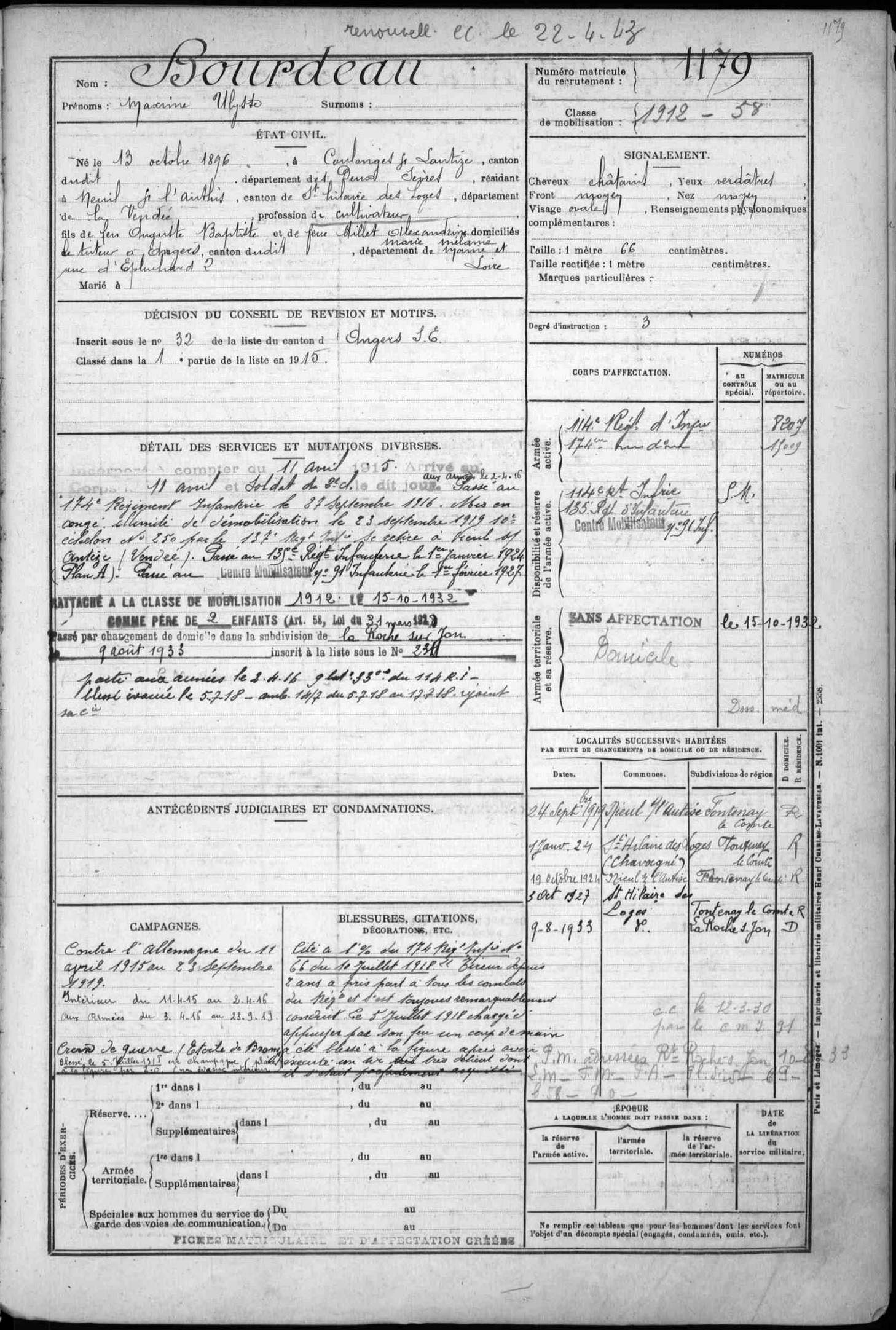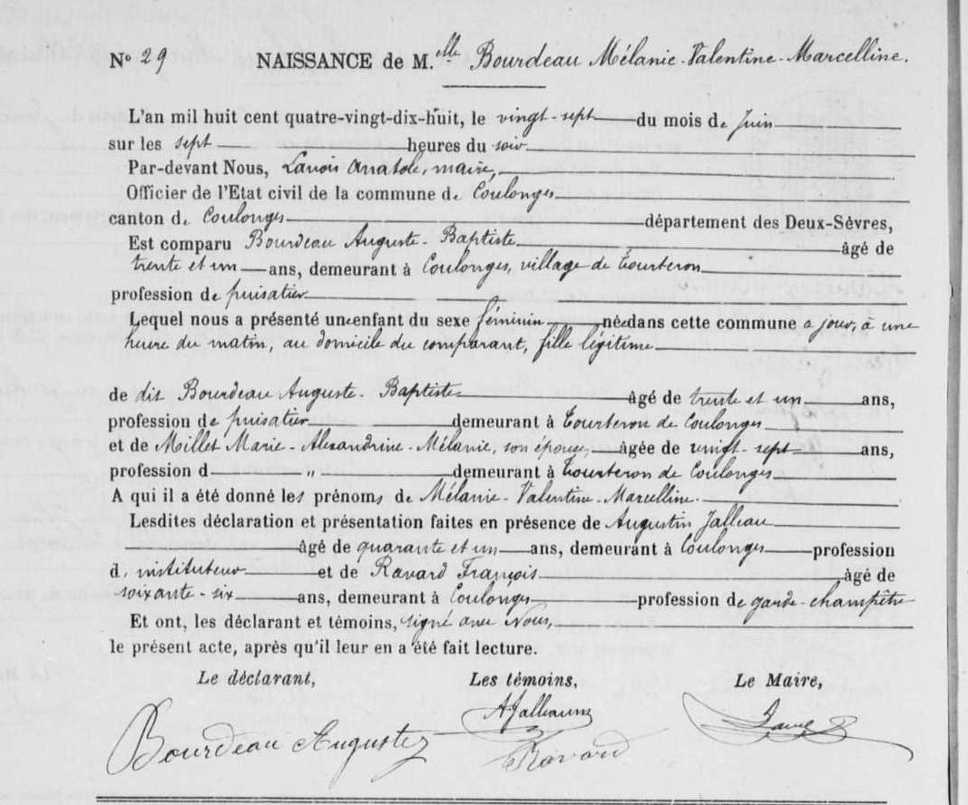 Naissance : 15 août 1837 à Saint-Pompain 79160