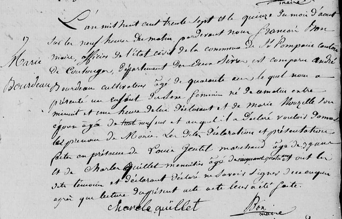 Naissance : 26 novembre 1767 à Villiers-en-Plaine 79160 Décès : 16 janvier 1844 à Villiers-en-Plaine 79160