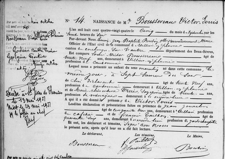 Père : BOUSSEREAU Victor Louis ( 1884 - 1951 )