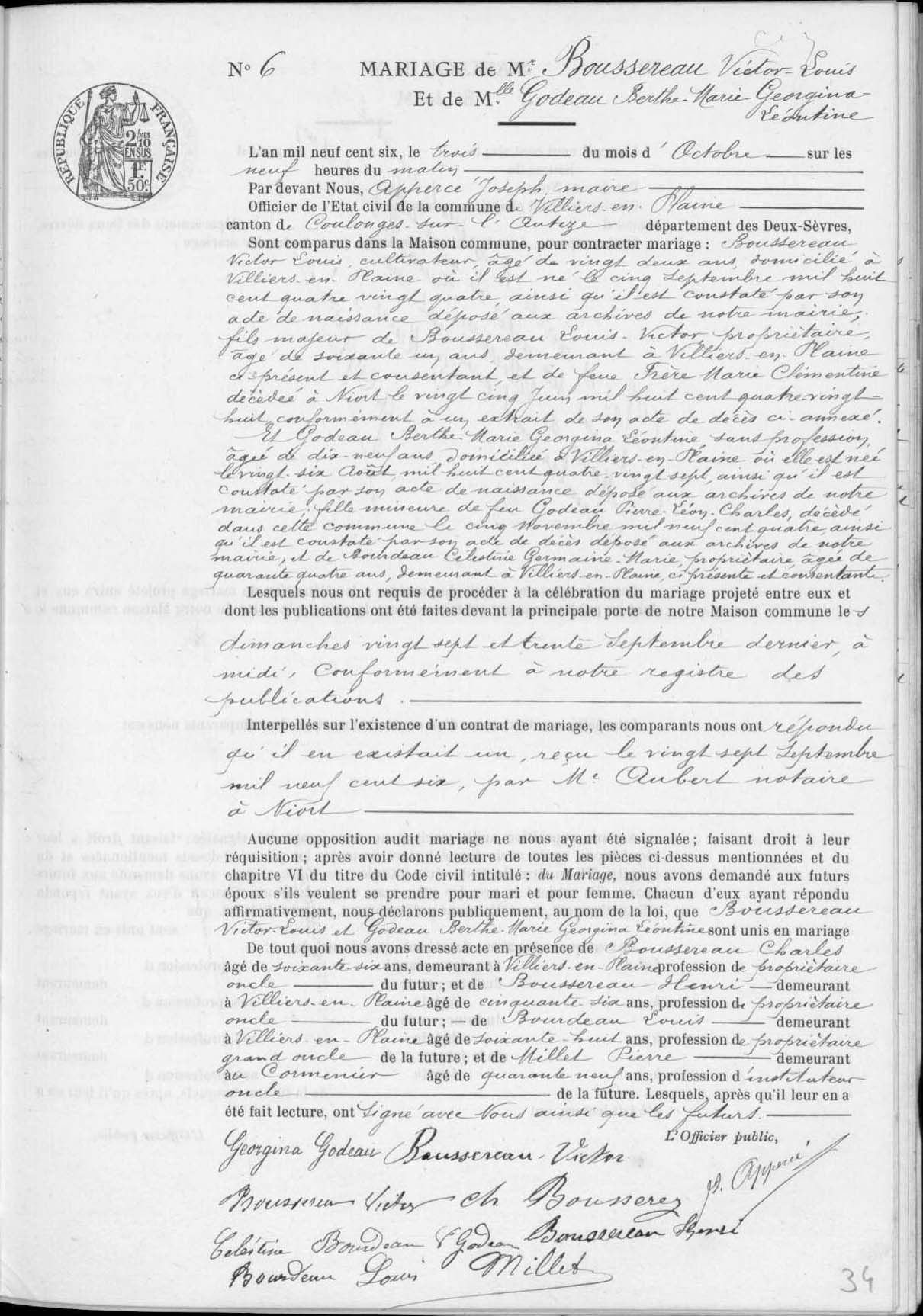 Père : BOUSSEREAU Louis Victor ( 1845 - 1925 )