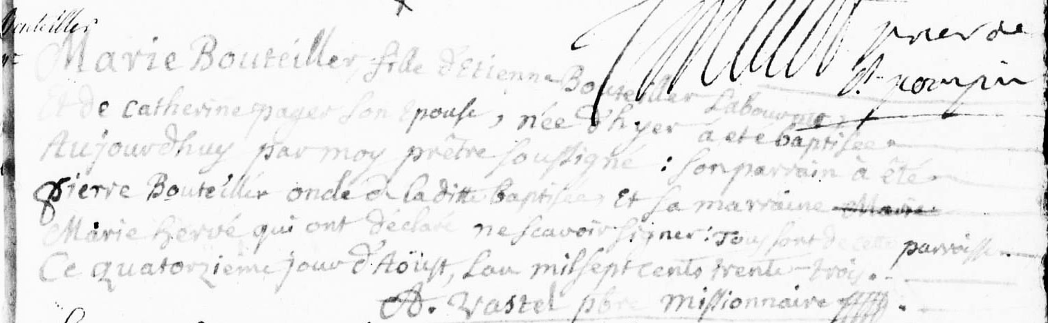 Père : BOUTEILLER Laurent ( 1678 - ? )