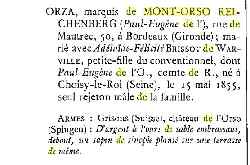Union : L'ORZA de MONT-ORSO de REICHENBERG (de ) Paul Eugène Valentin ( 1809 - 1886 )