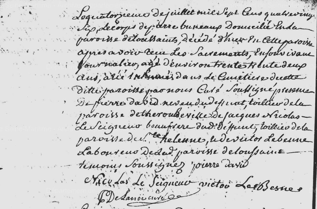 Naissance : 8 mars 1708 à Toussaint 76400 Décès : 24 mars 1789 à Toussaint 76400
