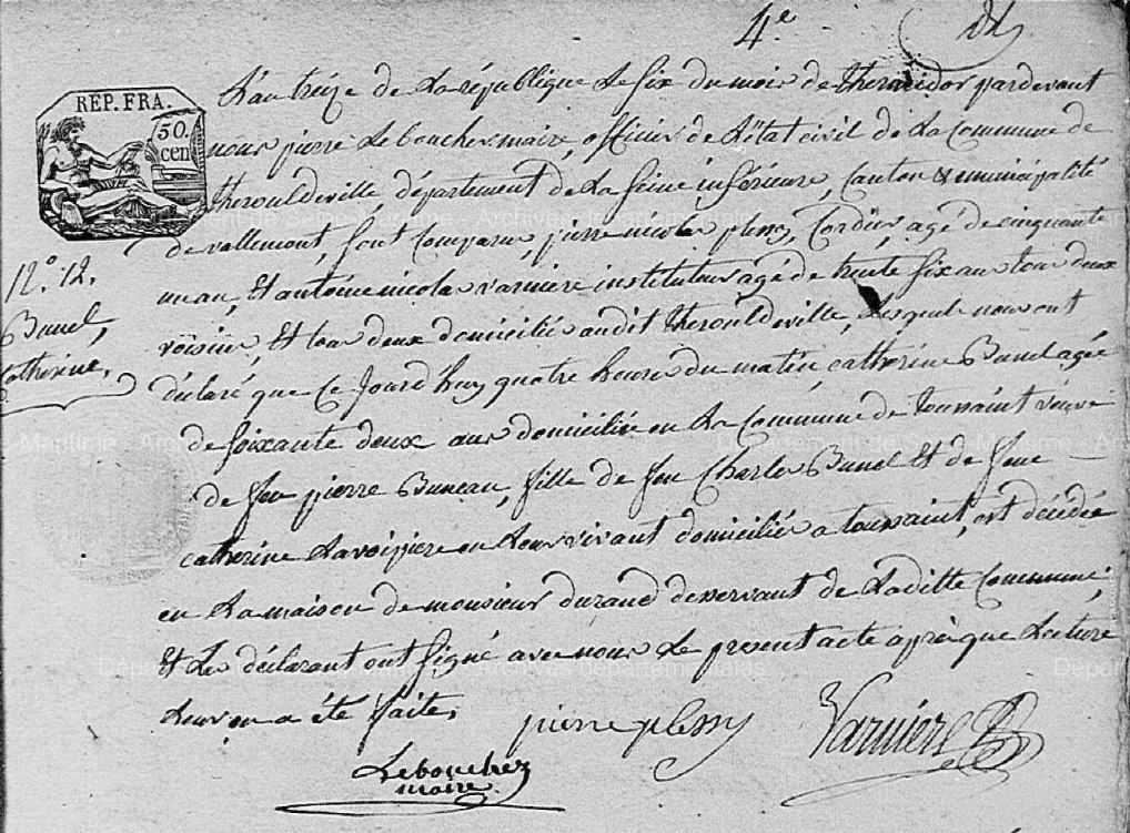 Naissance : 12 mars 1670 à Thiergeville 76540 Décès : après 1704