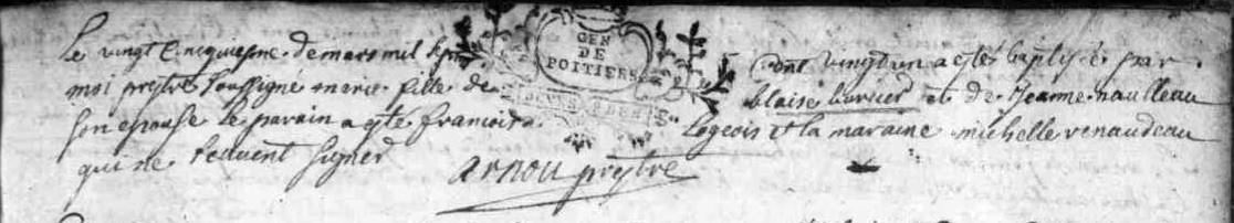 Baptême : 25 mars 1721 à Les Sables-d'Olonne 85180