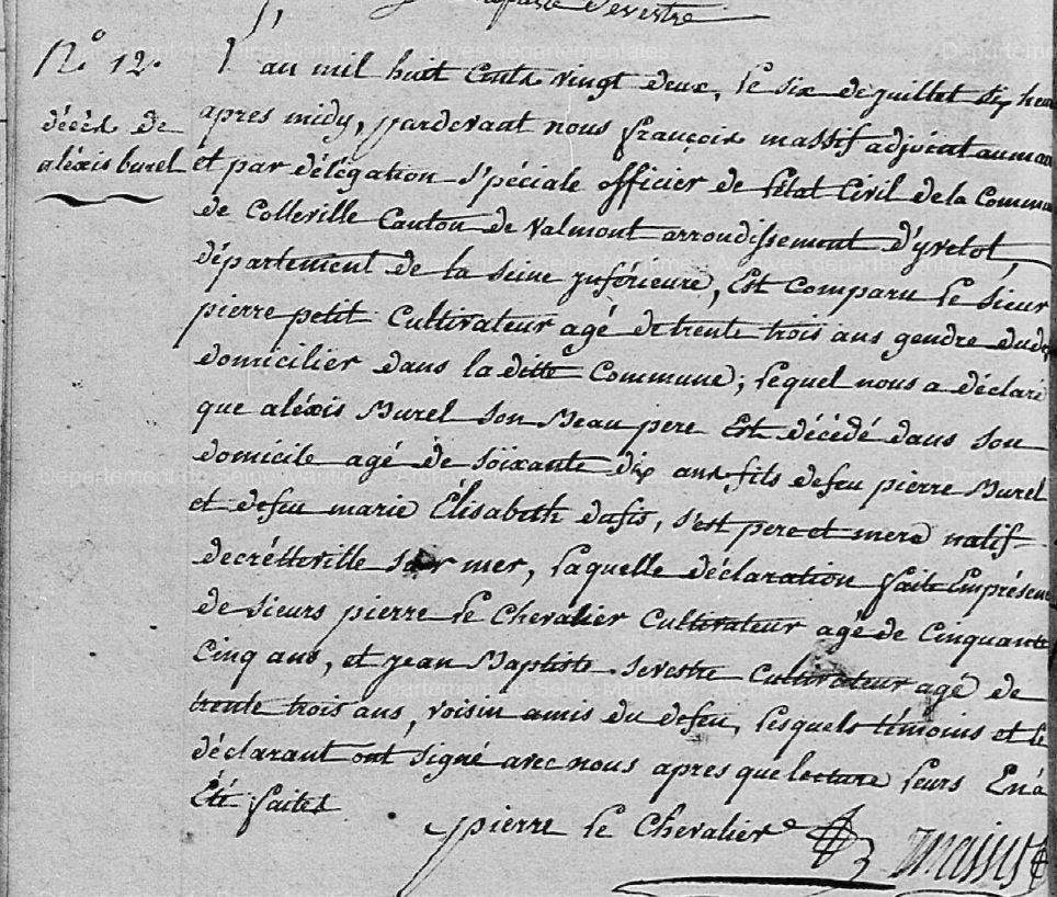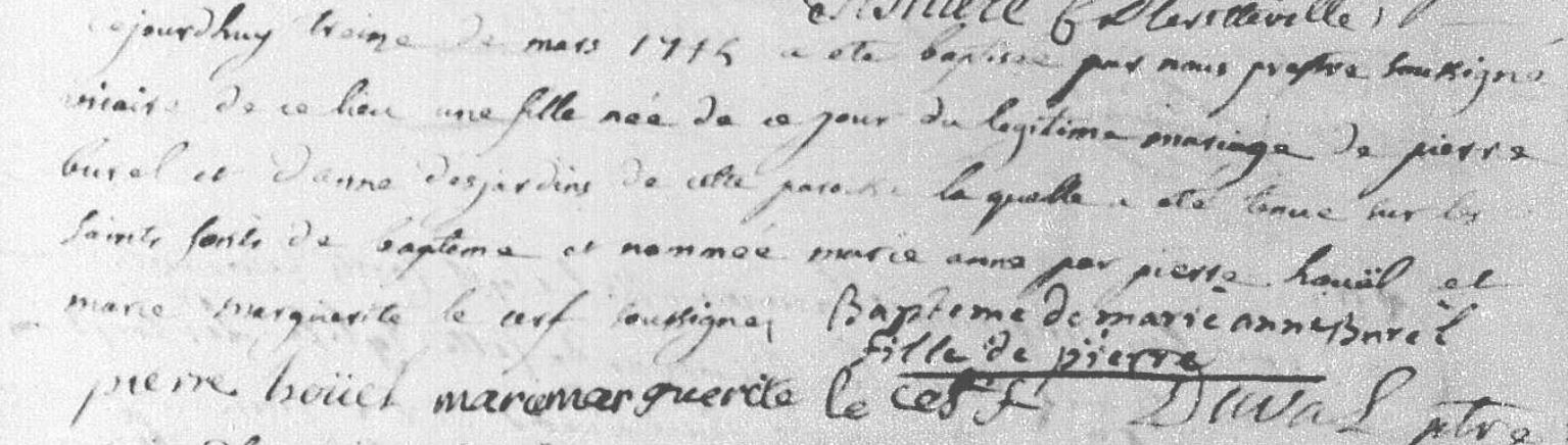 Baptême : 13 mars 1745 à Écretteville-sur-Mer 76540