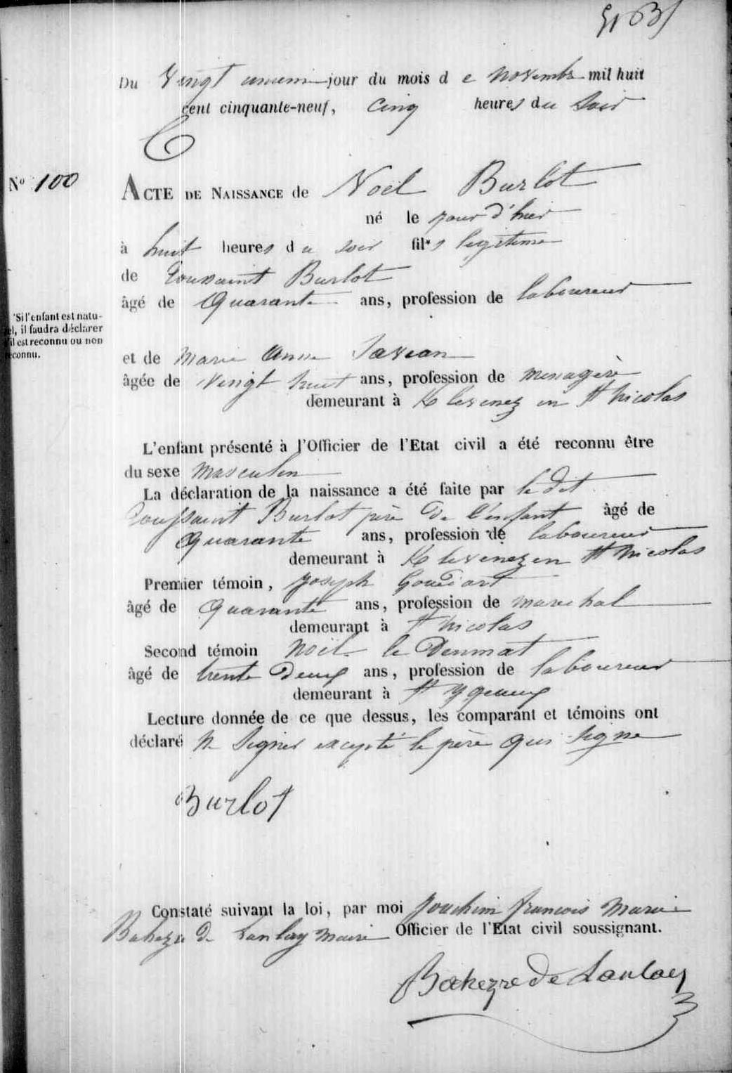 Naissance : 6 décembre 1821 à Laniscat 22570