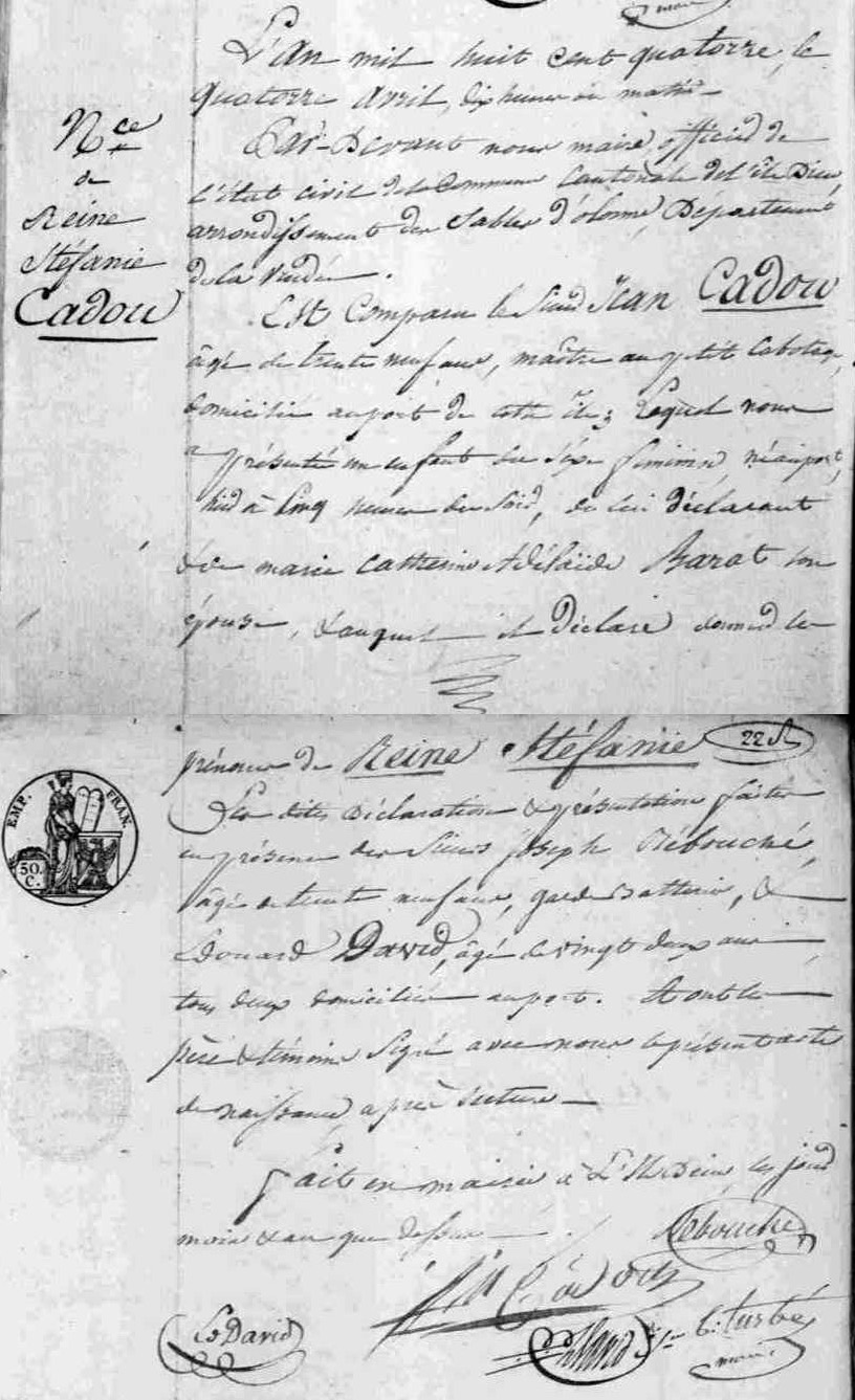 Mère : CADOU Reine Stéphanie ( 1814 - 1886 )