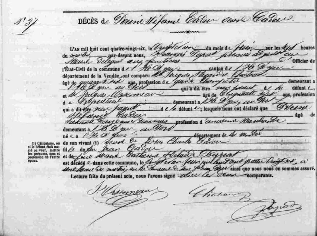 Décès : 21 juin 1886 à L'Île-d'Yeu 85350 au Port