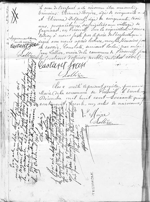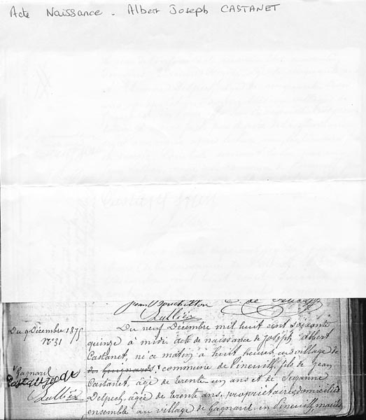 Père : CASTANET Pierre ( 1807 - 1872 )