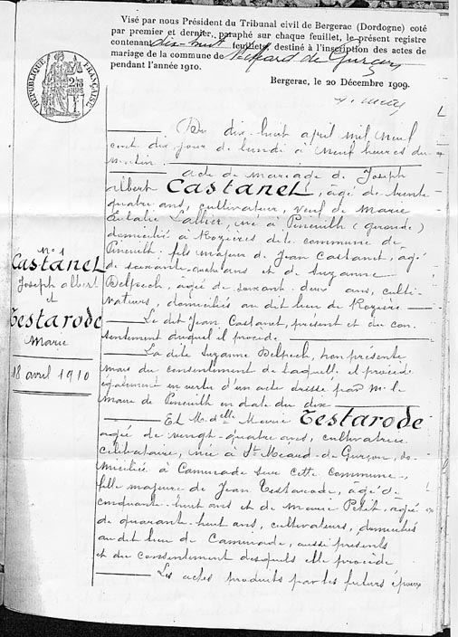 Mariage : 18 avril 1910 à Saint-Méard-de-Gurçon 24610