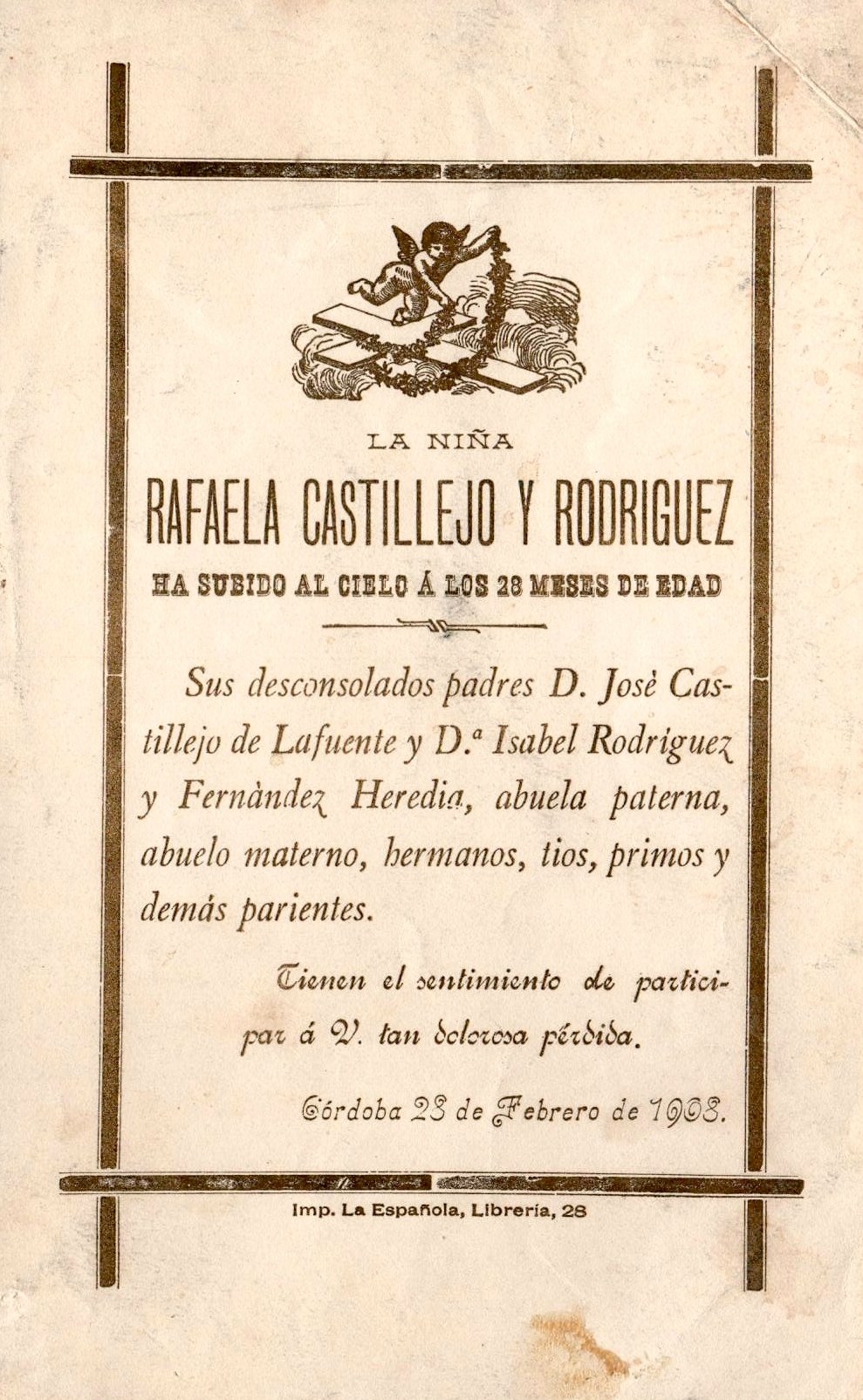 Baptême : 4 août 1901 à Córdoba 14001 Parroquia de Santo Domingo de Silos