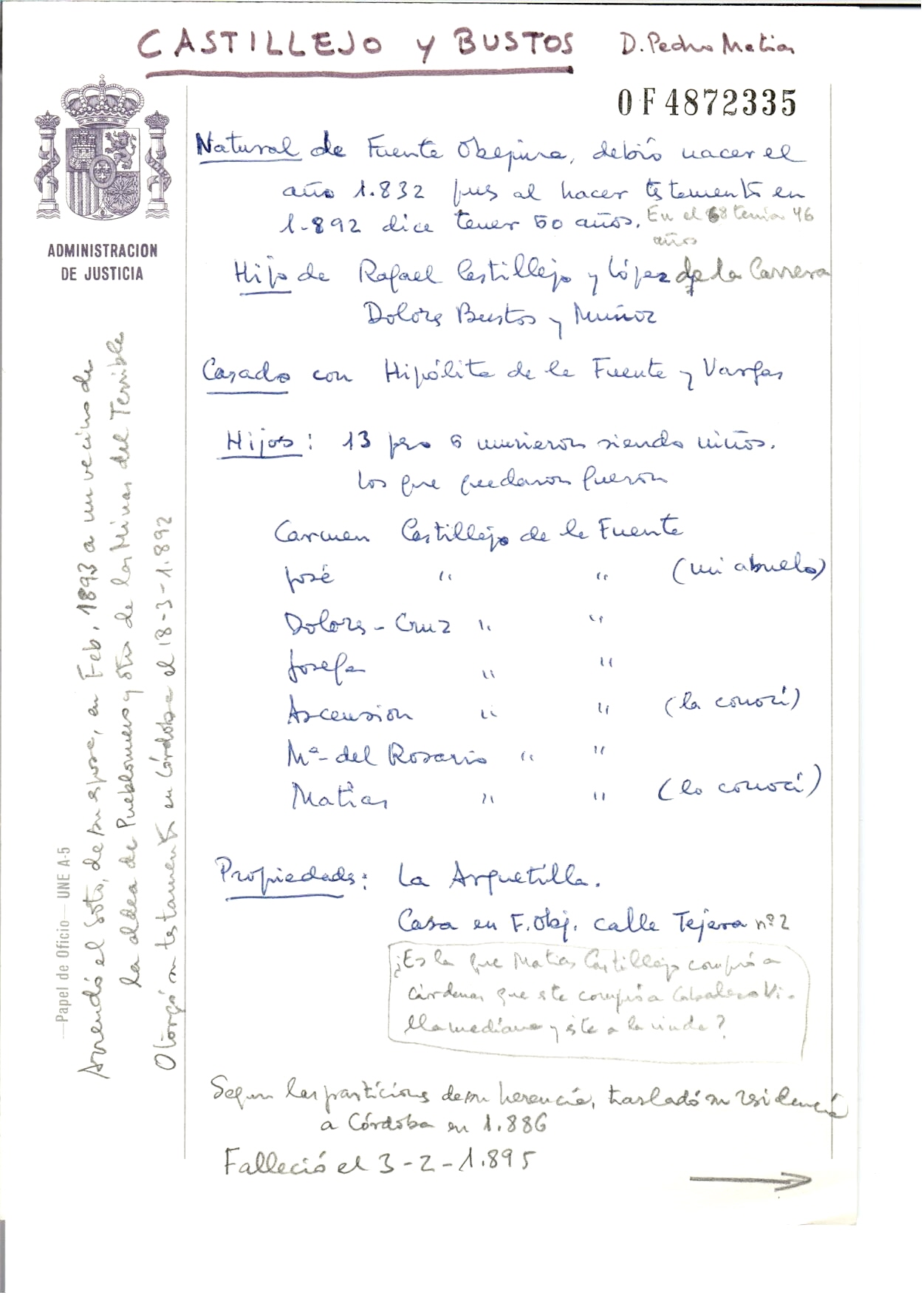 Père : CASTILLEJO Y BUSTOS Pedro Matias ( 1832 - 1895 )