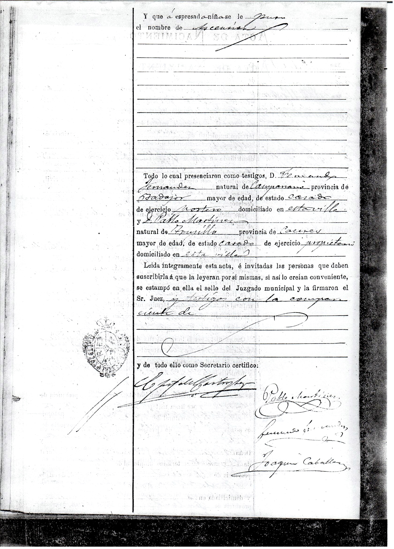 Naissance : 1832 à Fuente Obejuna 14297 Testament : 1892 à Córdoba 14001