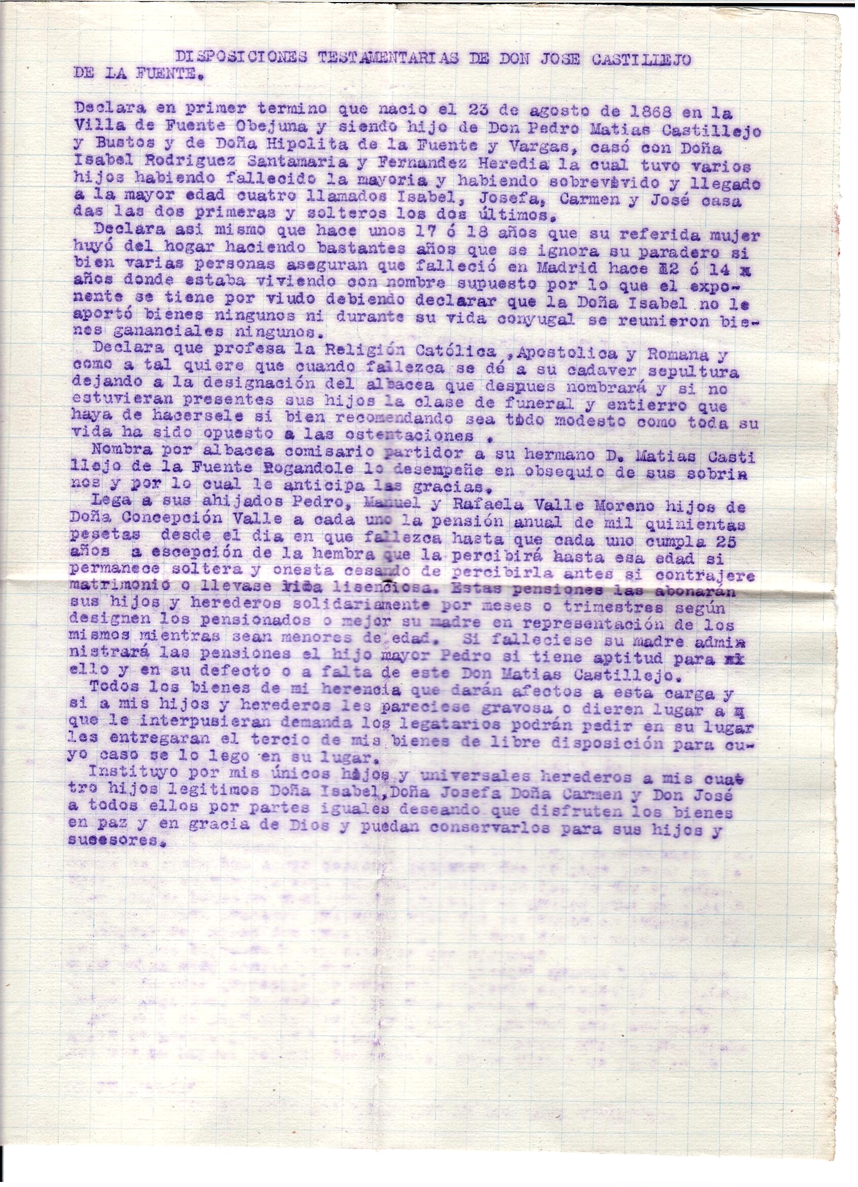 CASTILLEJO RODRÍGUEZ Maria Josefa Fuensanta Constanza Hipolita Ramona ( 1898 - ? )