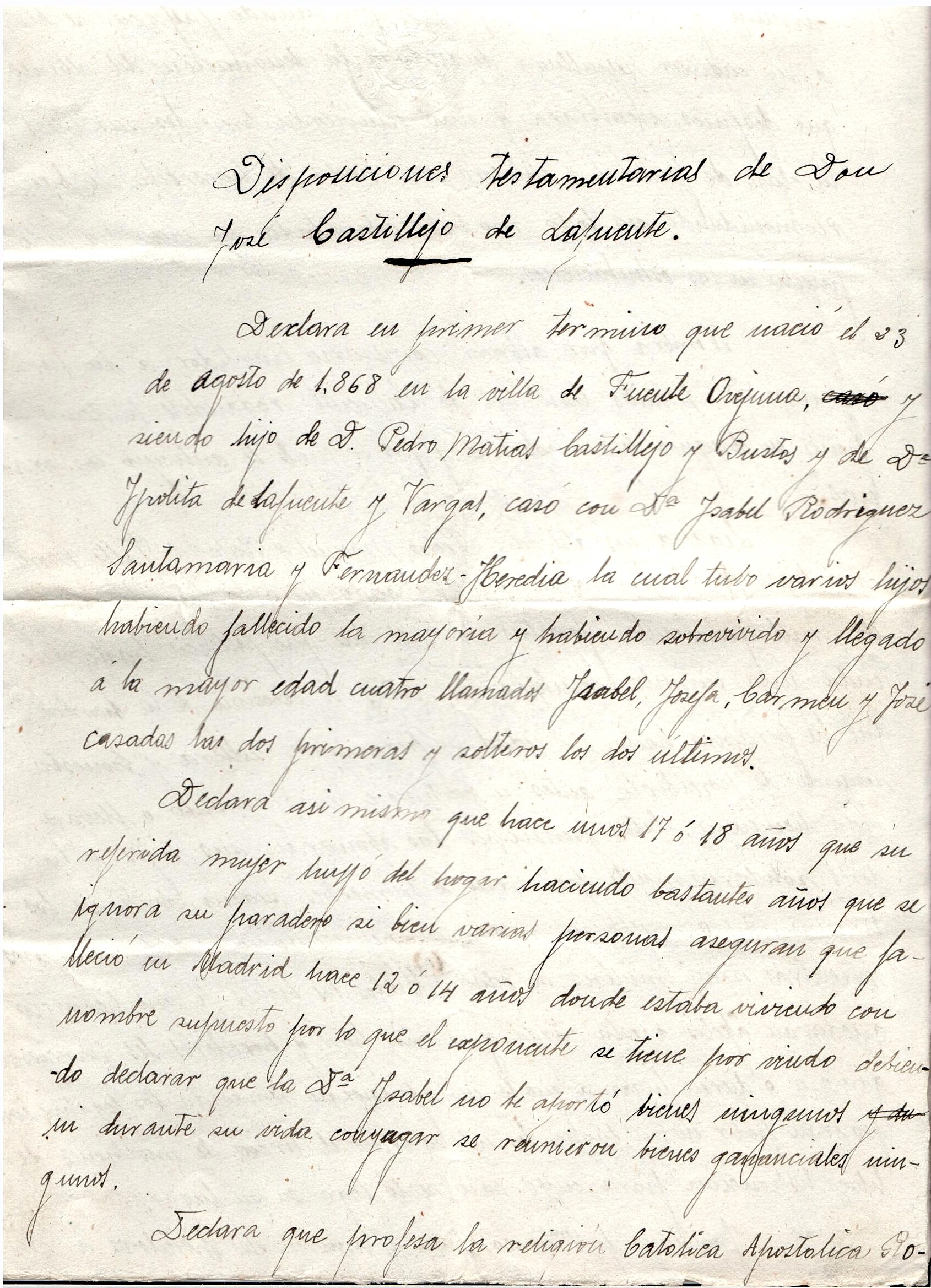 Naissance : 23 août 1868 à Fuente Obejuna 14297