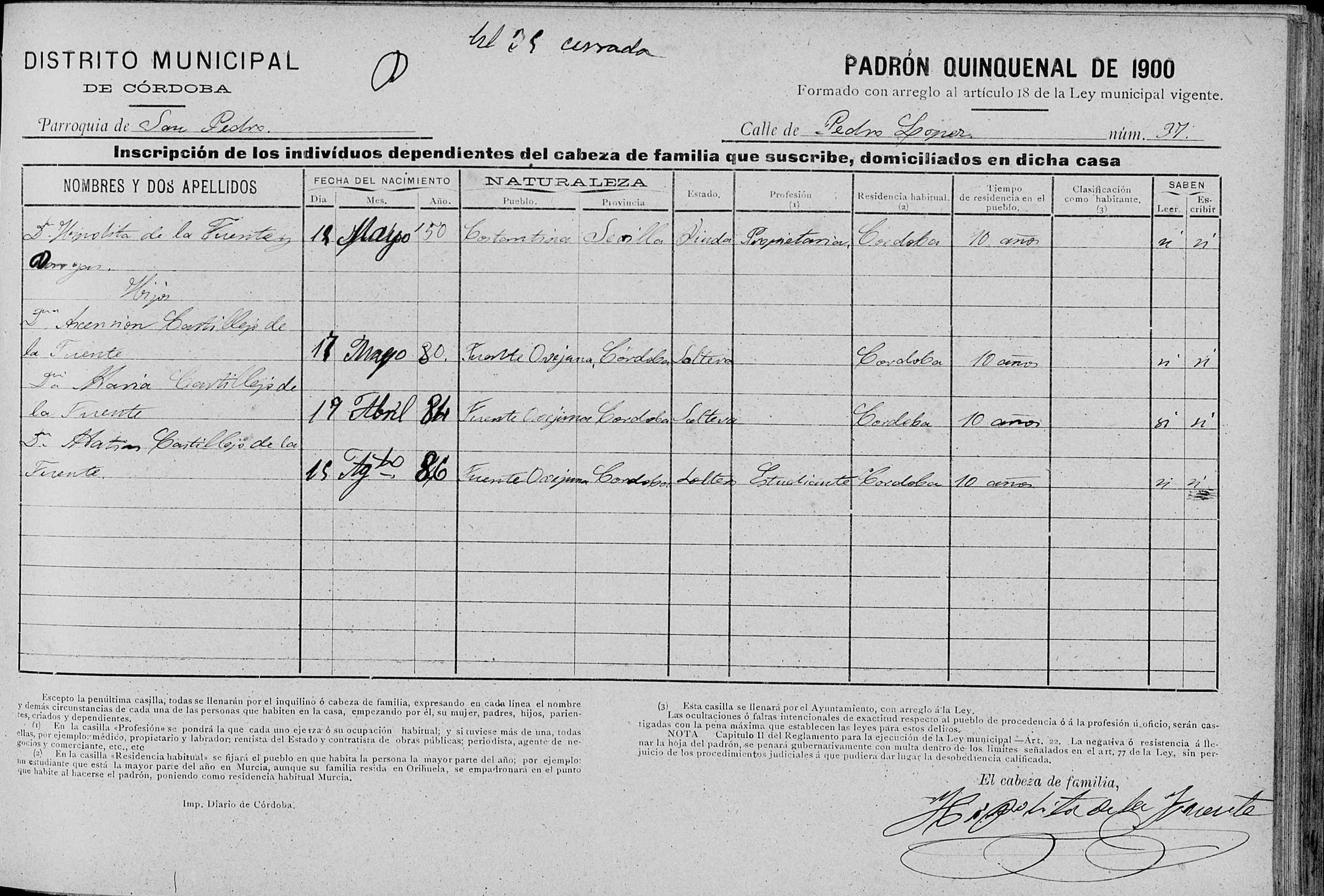 Domiciles : à Córdoba 14001 calle Pedro Lopez,37