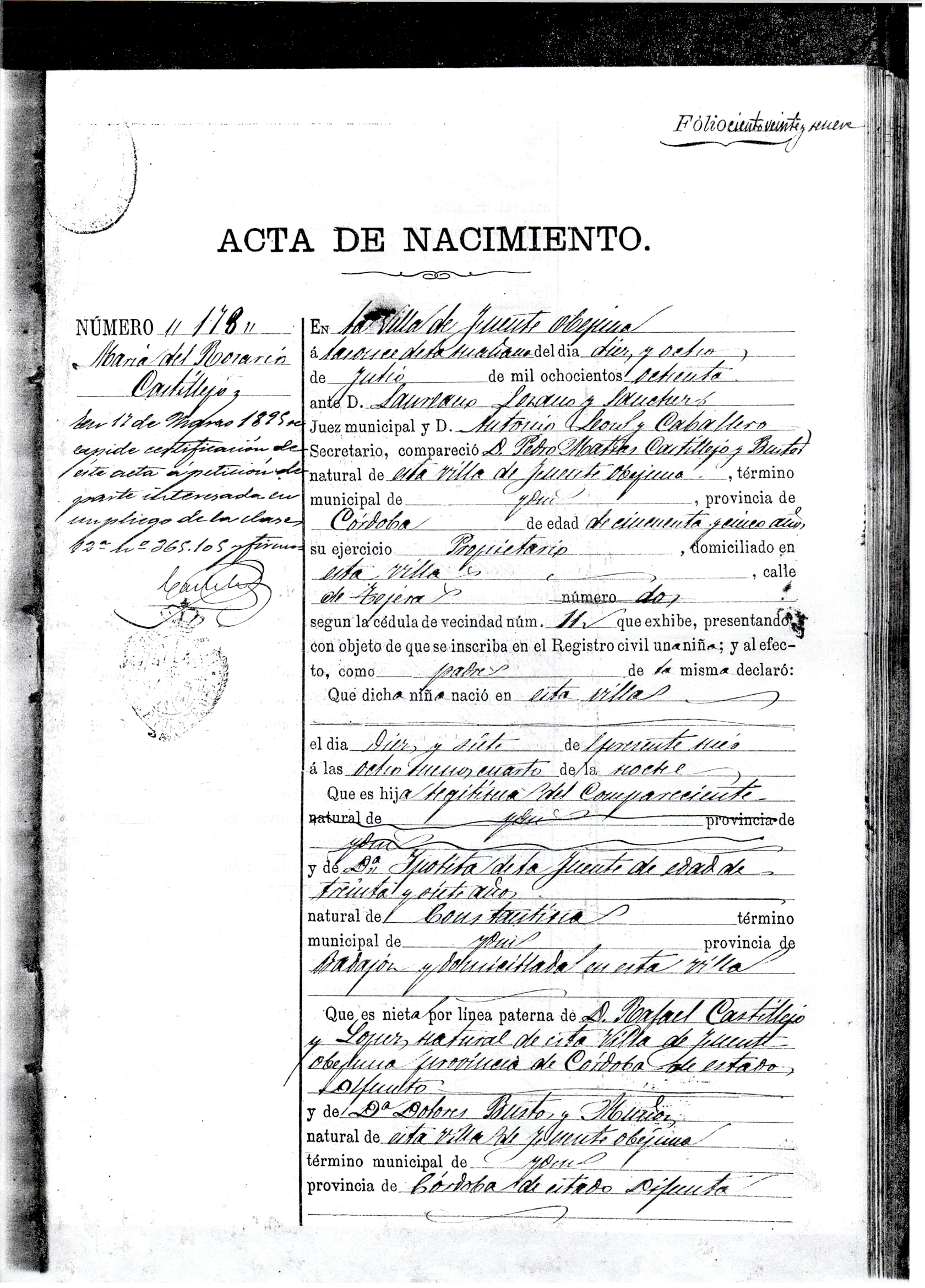Naissance : 1872 à Fuente Obejuna 14297