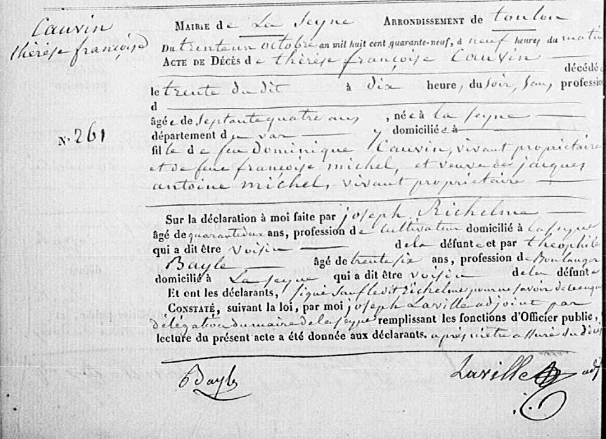 Naissance : 1775 à La Seyne-sur-Mer 83500 Décès : 30 octobre 1849 à La Seyne-sur-Mer 83500