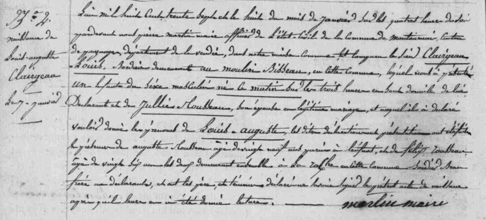 Naissance : 8 janvier 1837 à Montournais 85700 moulin Bisseau
