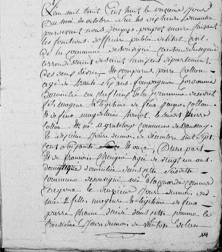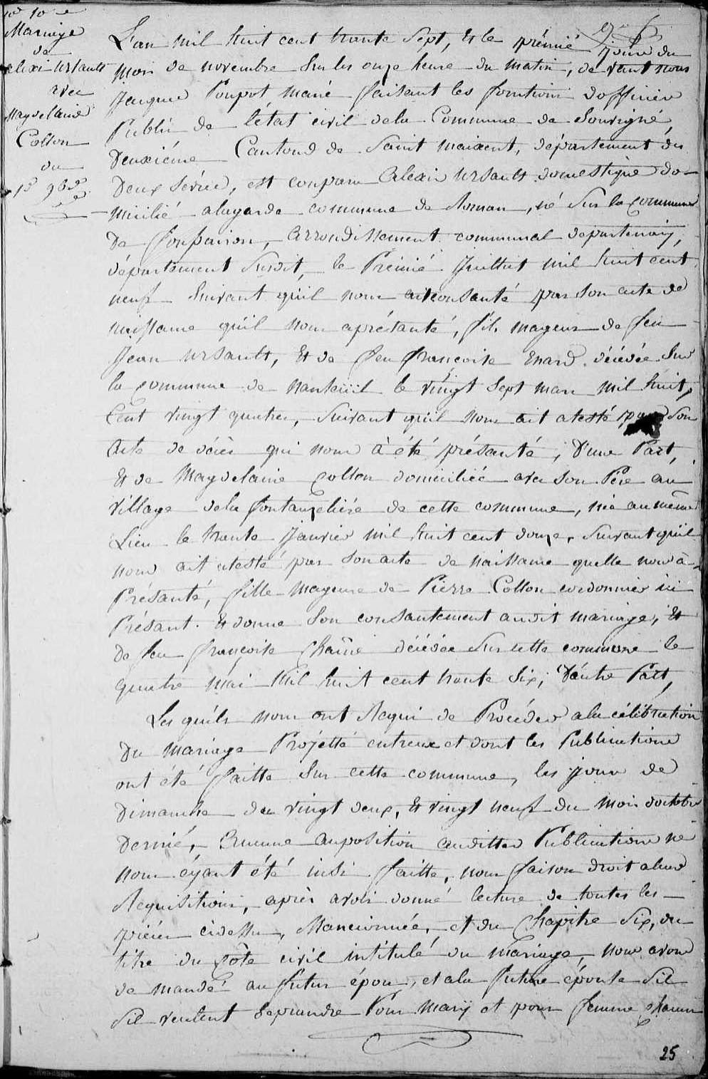 Mariage : 11 octobre 1808 à Souvigné 79800