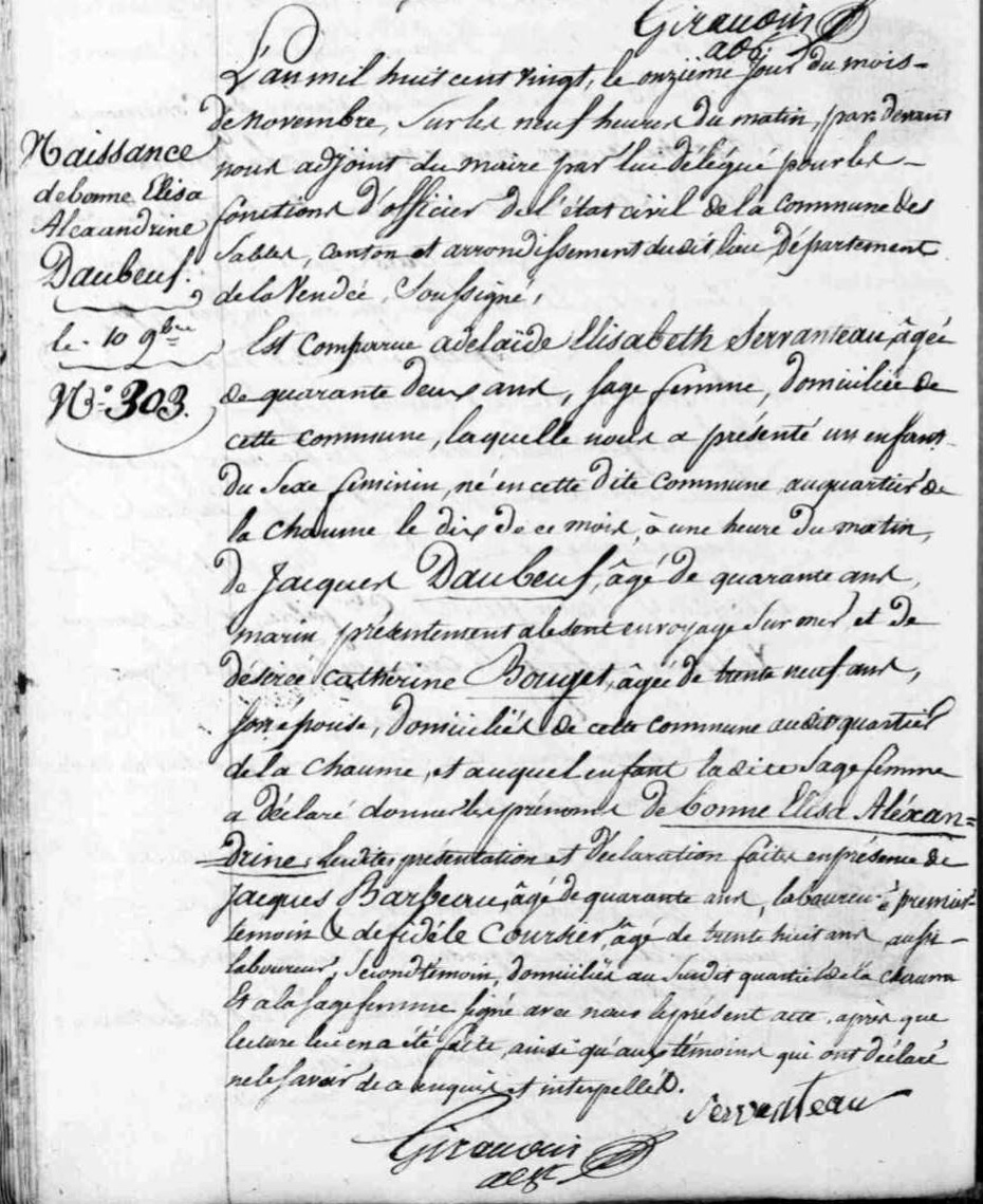 Père : DAUBEUF Jacques ( 1780 - ? )