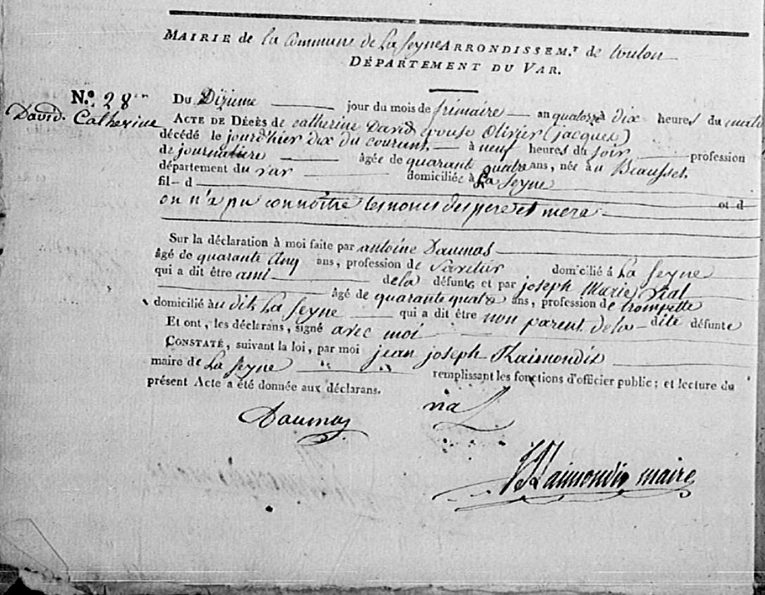 Naissance : 1761 à Le Beausset 83330 Décès : 30 novembre 1805 à La Seyne-sur-Mer 83500