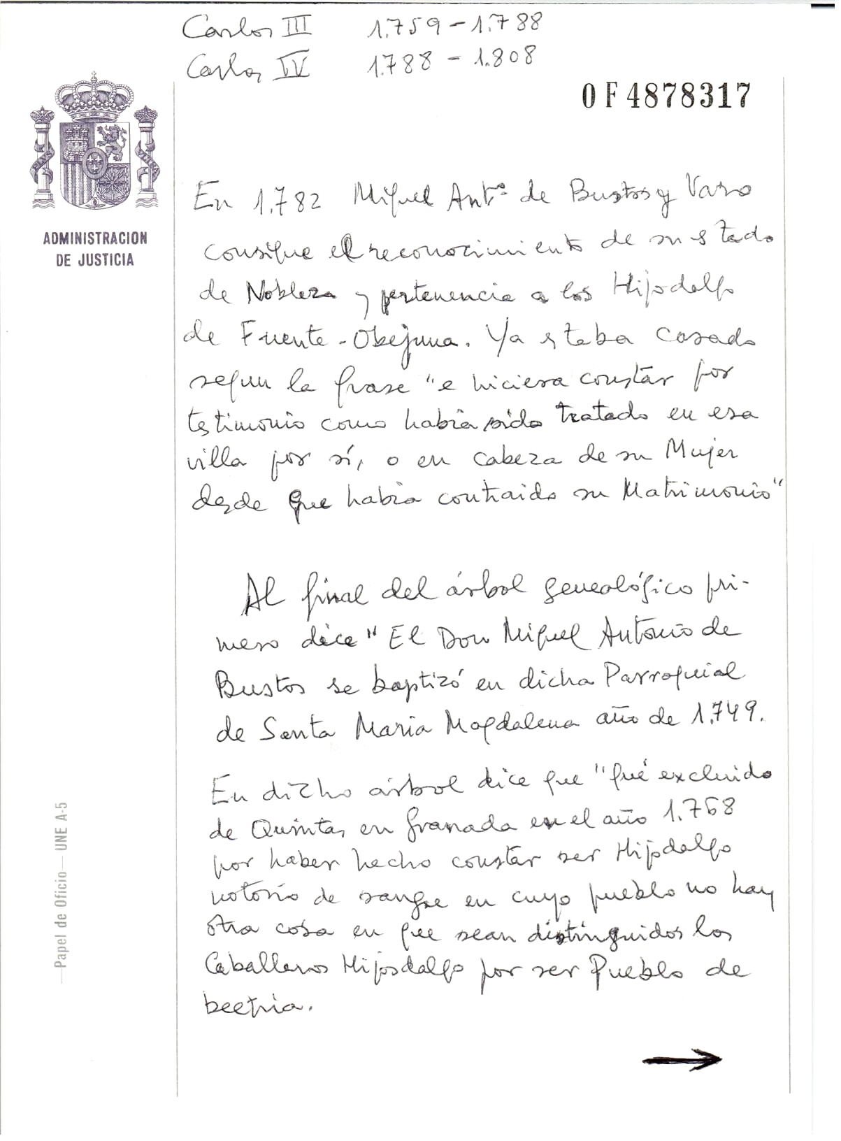 Enfant : DE BUSTOS Y VARO Miguel Antonio ( 1749 - ? )