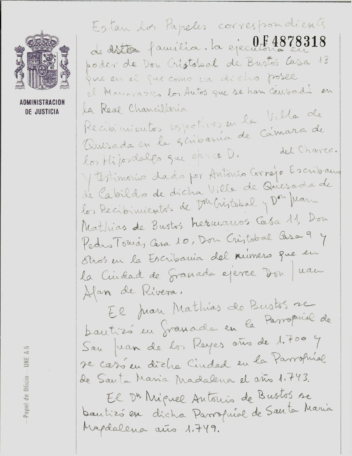 Baptême : 1749 à Granada 18001 Parroquia Santa Maria Magdalena