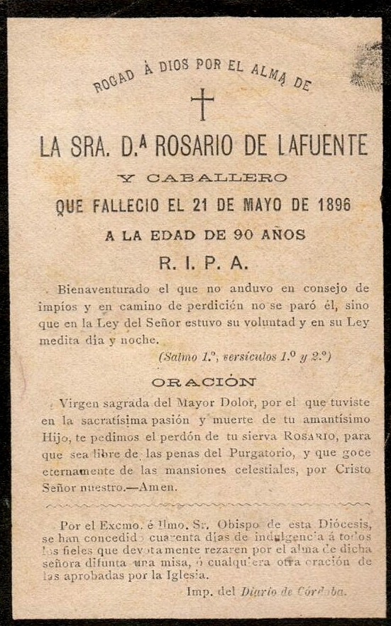 Naissance : 1806 Domicile : 1891 à Córdoba 14001 calle Juramento,3