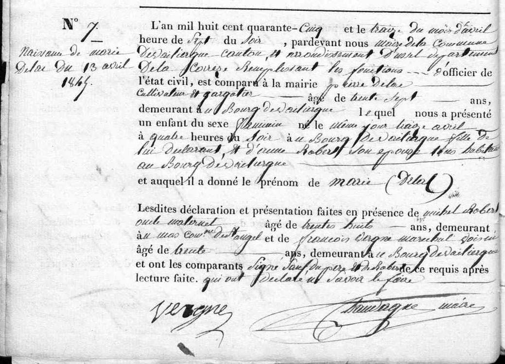 Naissance : 17 mai 1847 à Valiergues 19200 Décès : 20 août 1847 à Valiergues 19200