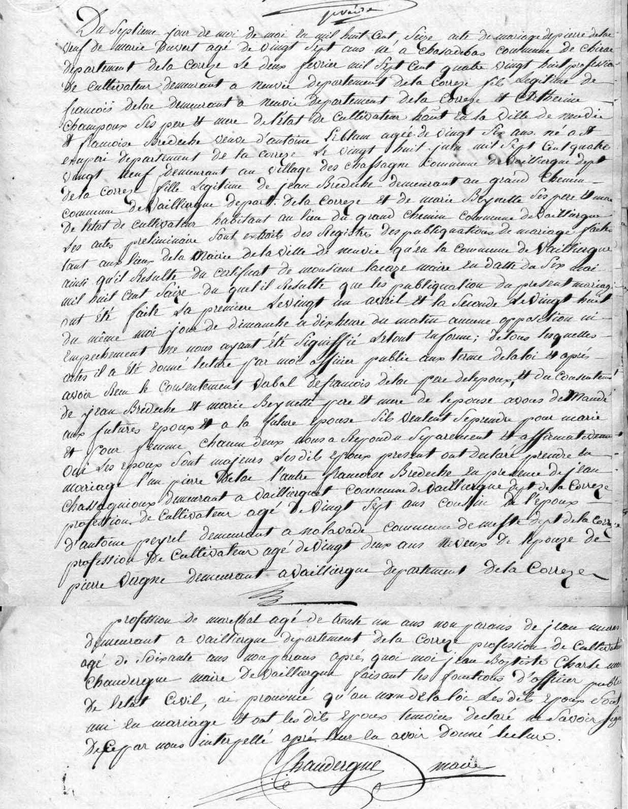 Naissance : 2 février 1788 à Chirac-Bellevue 19160 Chassac Bas