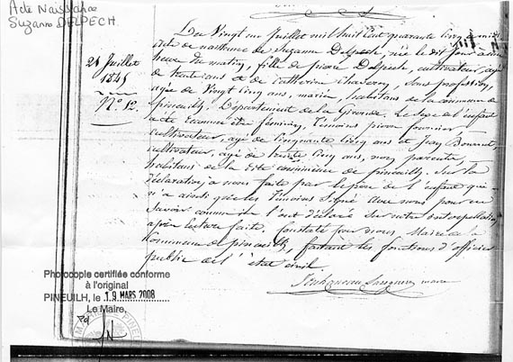 Enfant : DELPECH Suzanne ( 1845 - 1911 )
