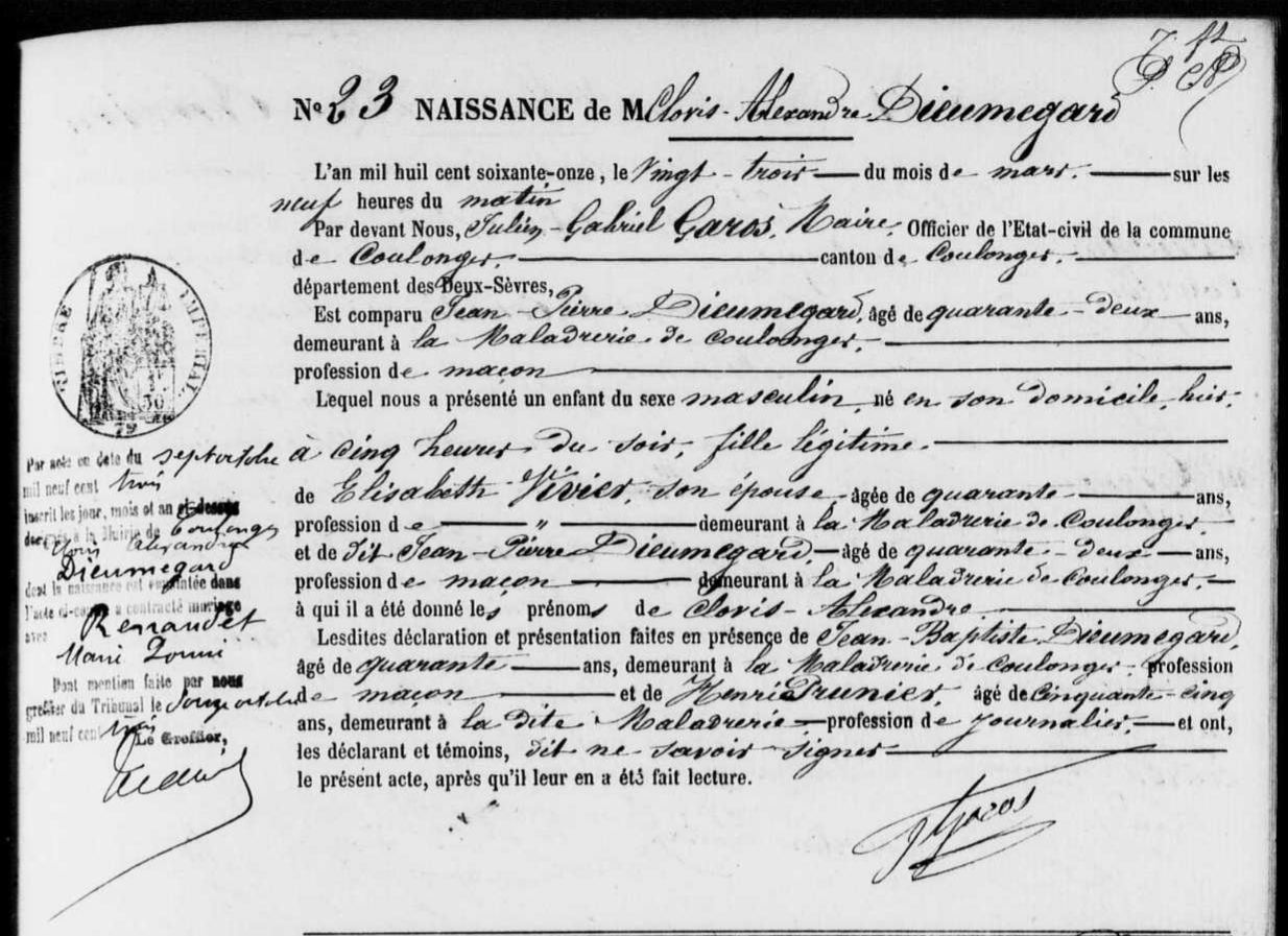 Père : DIEUMEGARD Pierre ( 1797 - ? )