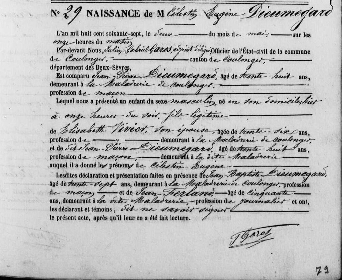 Enfants : DIEUMEGARD Célestin Eugène ( 1867 - ? )