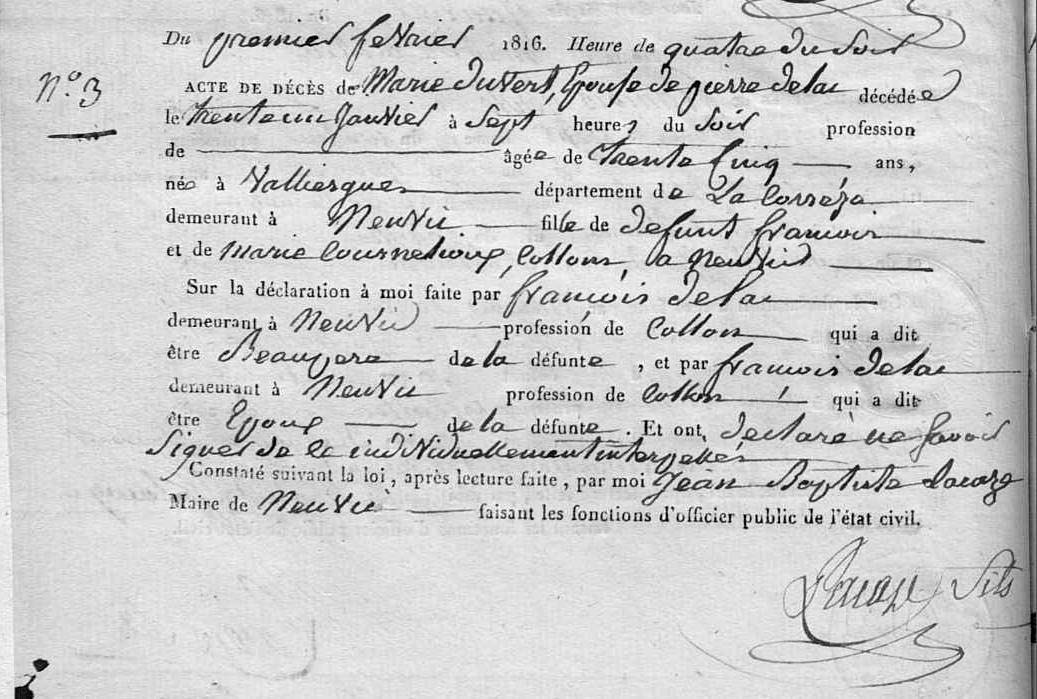 Enfant : DUVERT Marie ( 1781 - 1816 )