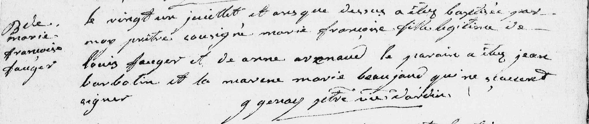 Mère : THIBAUDEAU Marguerite ( 1690 - ? )