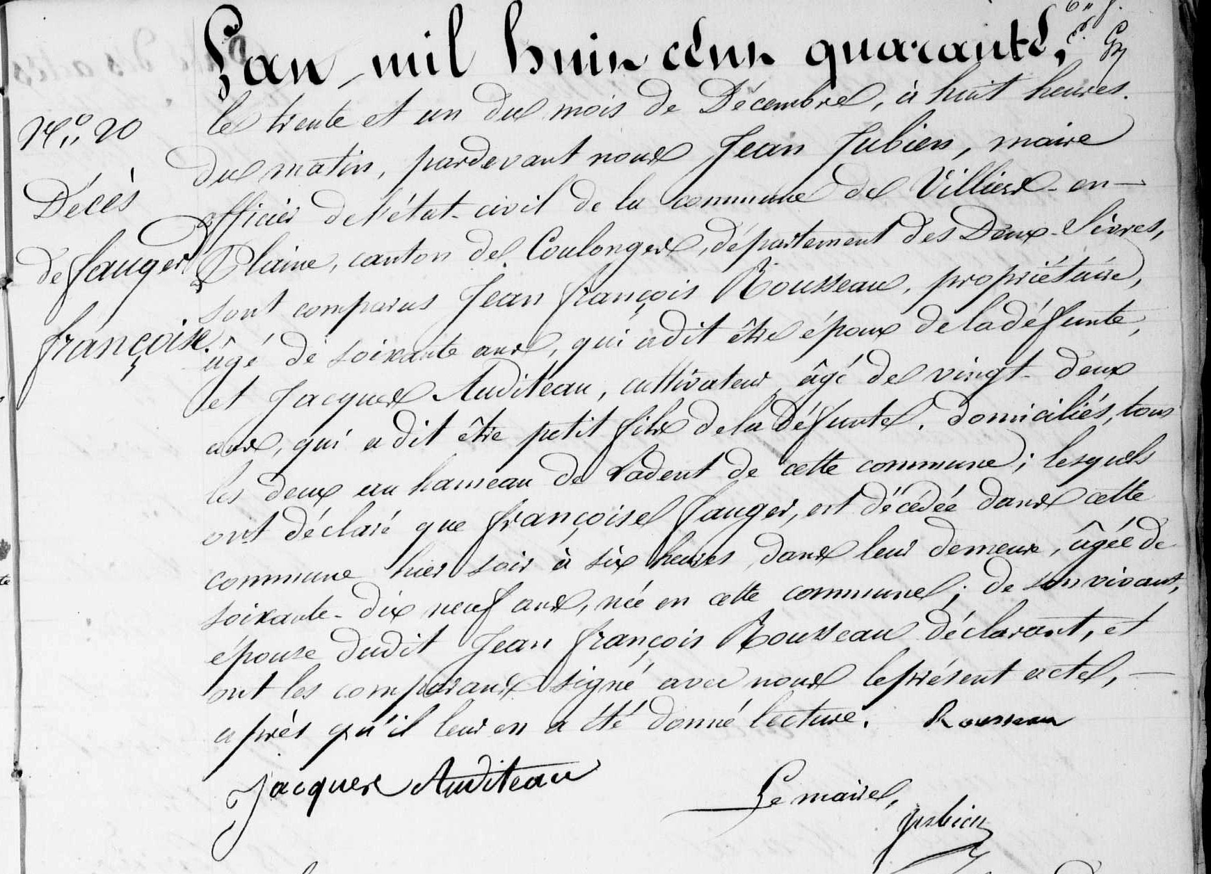 Naissance : à Saint-Pompain 79160 Décès : 5 décembre 1791 à Ardin 79160
