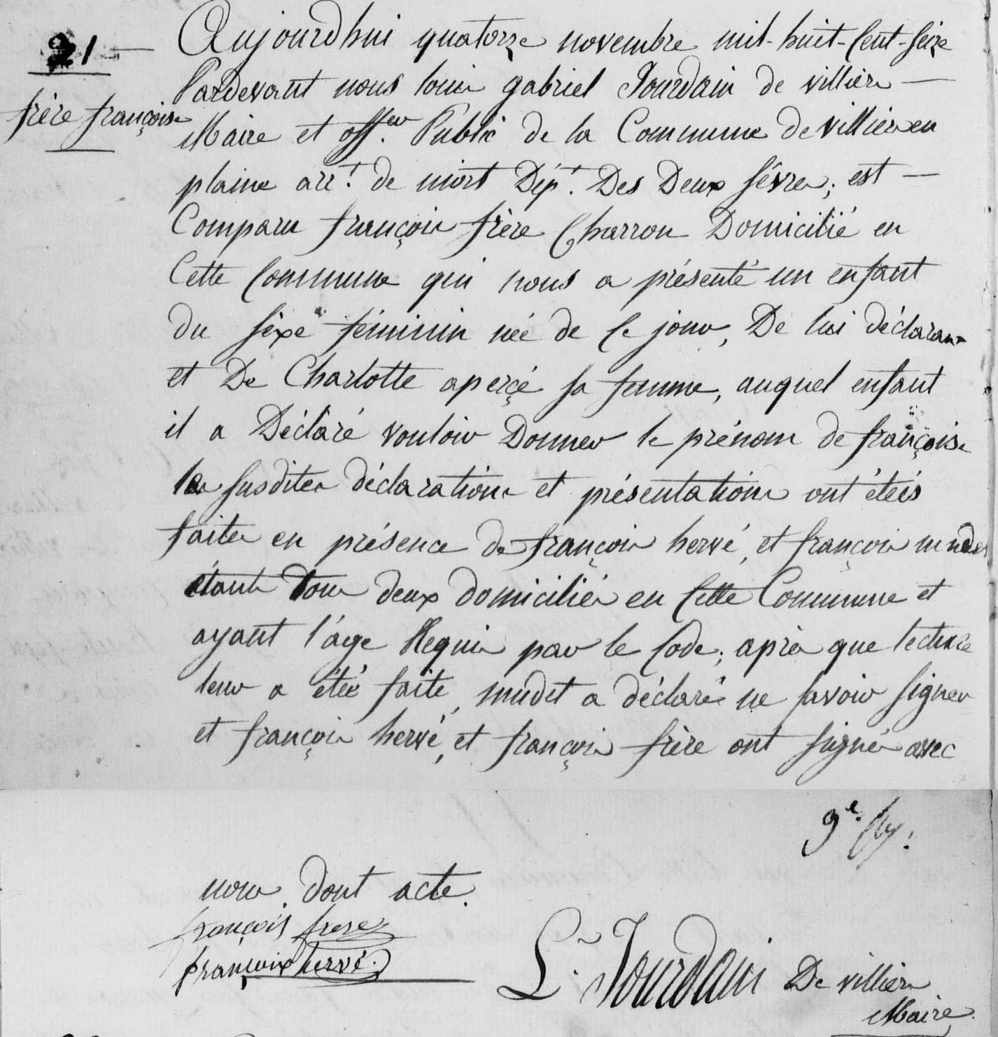 Naissance : 14 novembre 1816 à Villiers-en-Plaine 79160