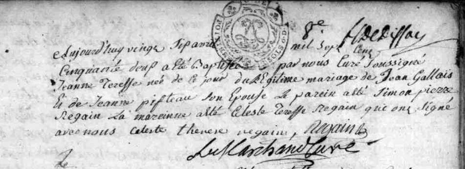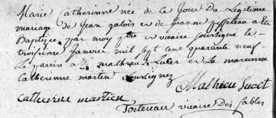 Baptême : 9 janvier 1749 à Les Sables-d'Olonne 85180