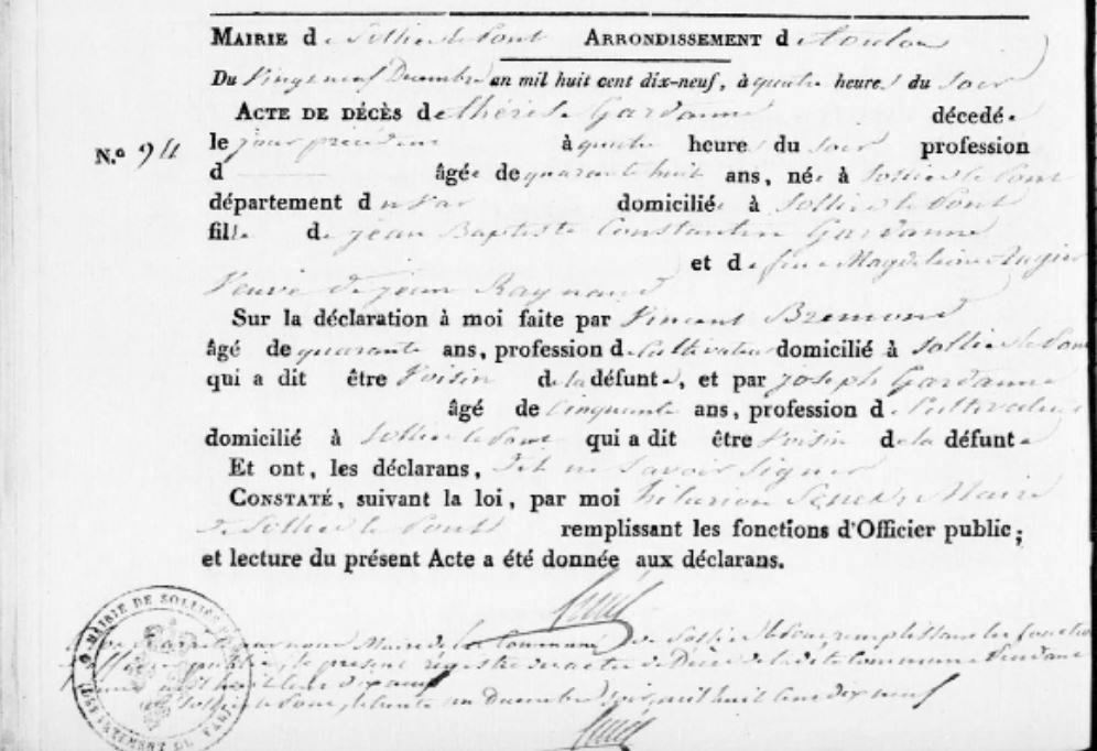 Naissance : 1773 Décès : 28 décembre 1819 à Solliès-Pont 83210